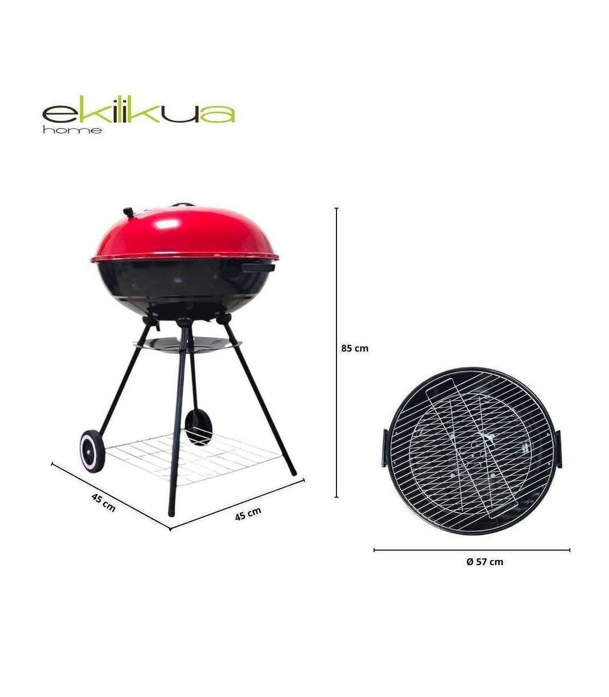 Barbacoa Roja Portátil, descubre la experiencia perfecta de barbacoa con esta parrilla portátil de Ekilikua Home. Con dimensiones de 45 x 45 x 85 cm y un diámetro de parrilla de 57 cm, es ideal para reuniones familiares y encuentros al aire libre. Su diseño incluye una elegante tapa roja y base negra, construida en acero resistente para mayor durabilidad. Las ruedas incorporadas facilitan su transporte, mientras que su rejilla inferior ofrece espacio adicional para almacenamiento. La parrilla cromada permite una cocción uniforme y es perfecta para asar todo tipo de alimentos. Su estructura de tres patas proporciona estabilidad en diferentes superficies, y el diseño compacto la hace ideal tanto para jardines como para camping. Esta barbacoa combina funcionalidad y estilo, siendo una excelente opción para los amantes de la cocina al aire libre que buscan versatilidad y comodidad en sus parrilladas.