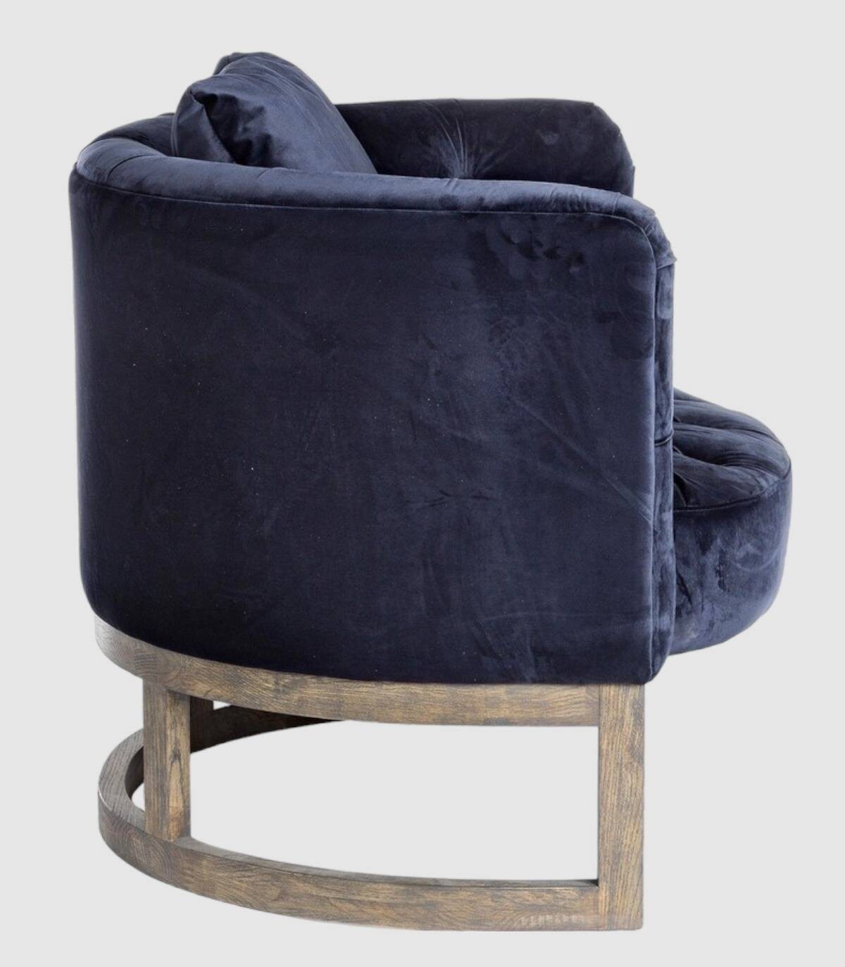 La butaca Midway con forma redondeada, cojín incluido, y patas con forma de marco de media circumferencia. Tiene estructura de madera de roble, tapizado 100% poliéster. Densidad relleno de espuma de poliuretano: asiento parte delantera 30 kg/m3, asiento parte trasera 25 kg/m3, respaldo 25 kg/m3.
