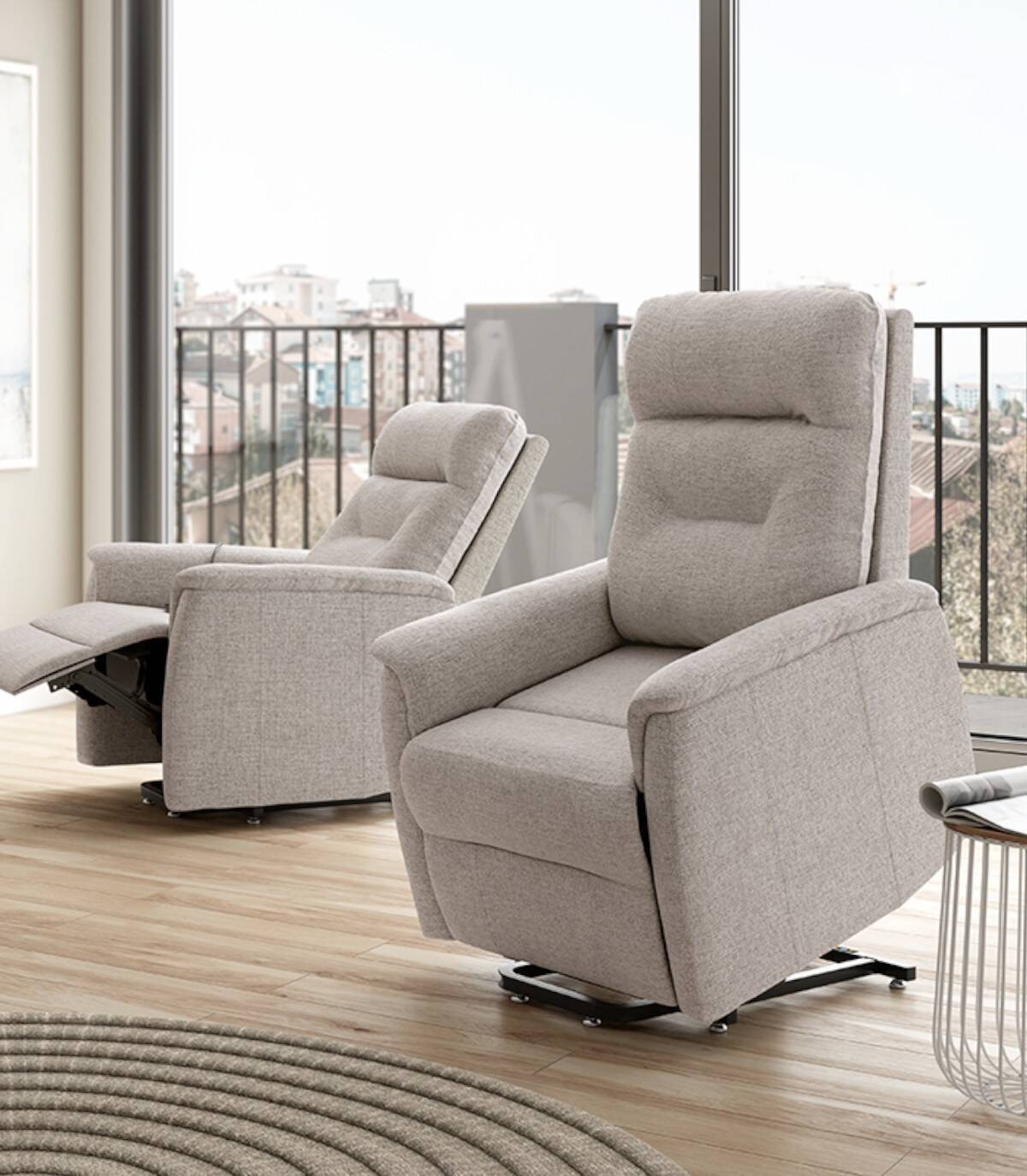 La butaca Diana eléctrico con mando de dos acciones tiene estructura de hierro pintado color negro, tablero contrachapado y base con entrelazado de muelles metálicos de 1 mm en zigzag con cincha de alta resistencia.