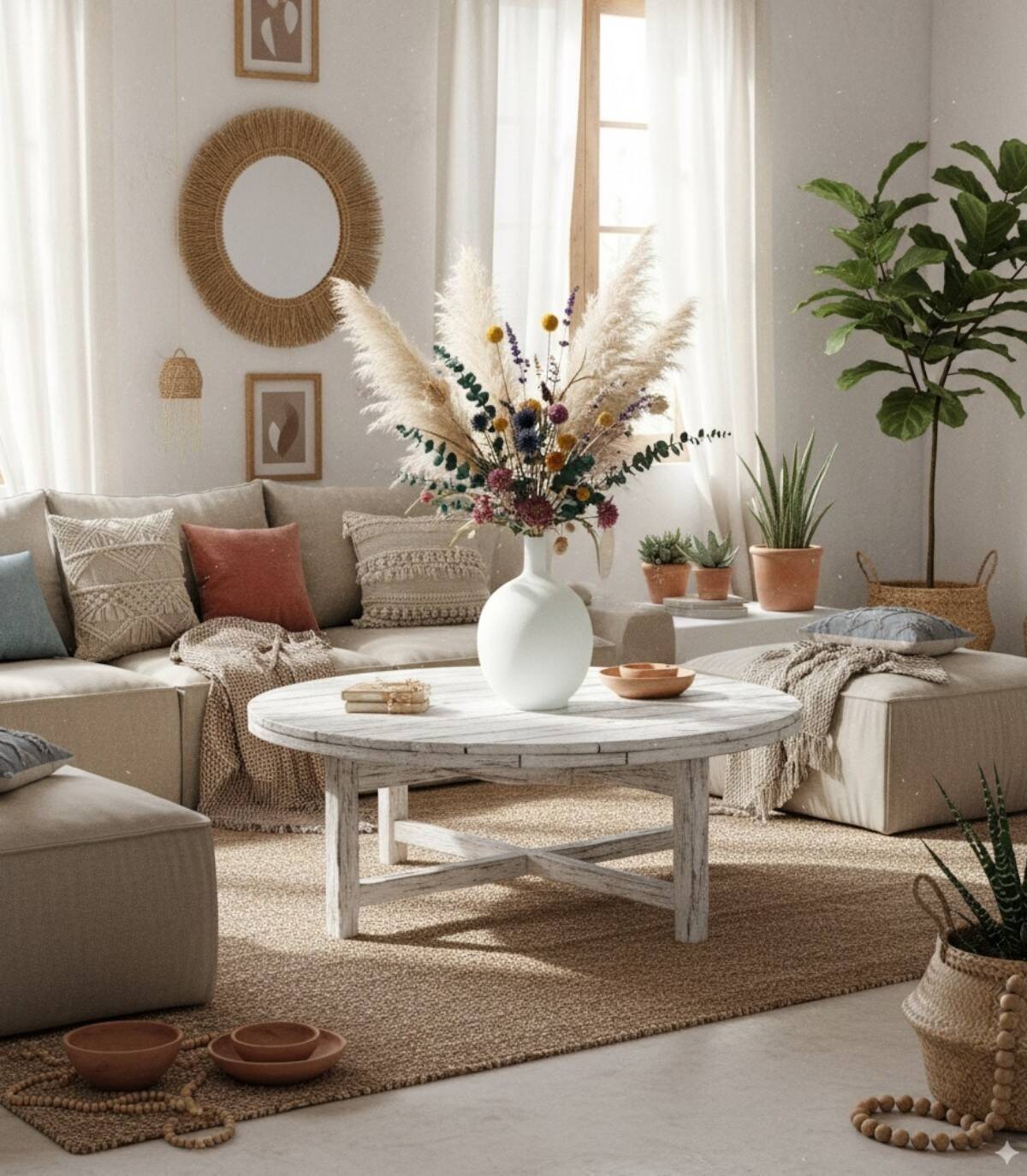 El jarrón blanco redondo mediano esta fabricado de terracota.
