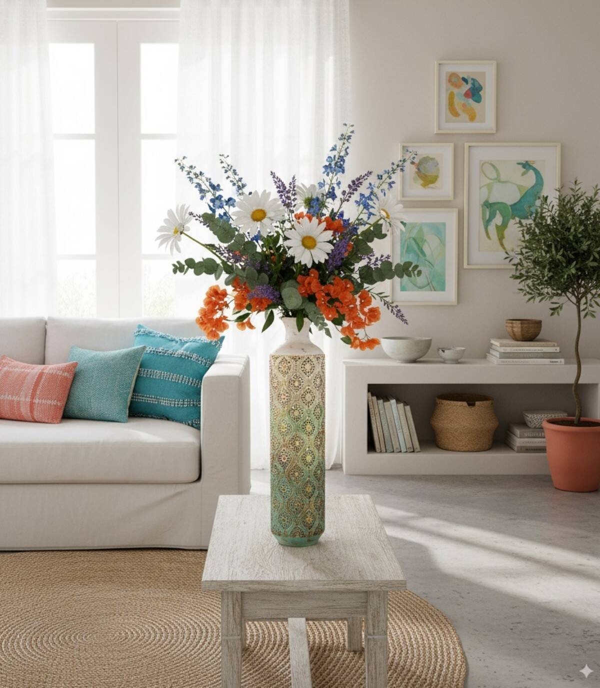 Jarrón metal blanco azul envejecido pequeño