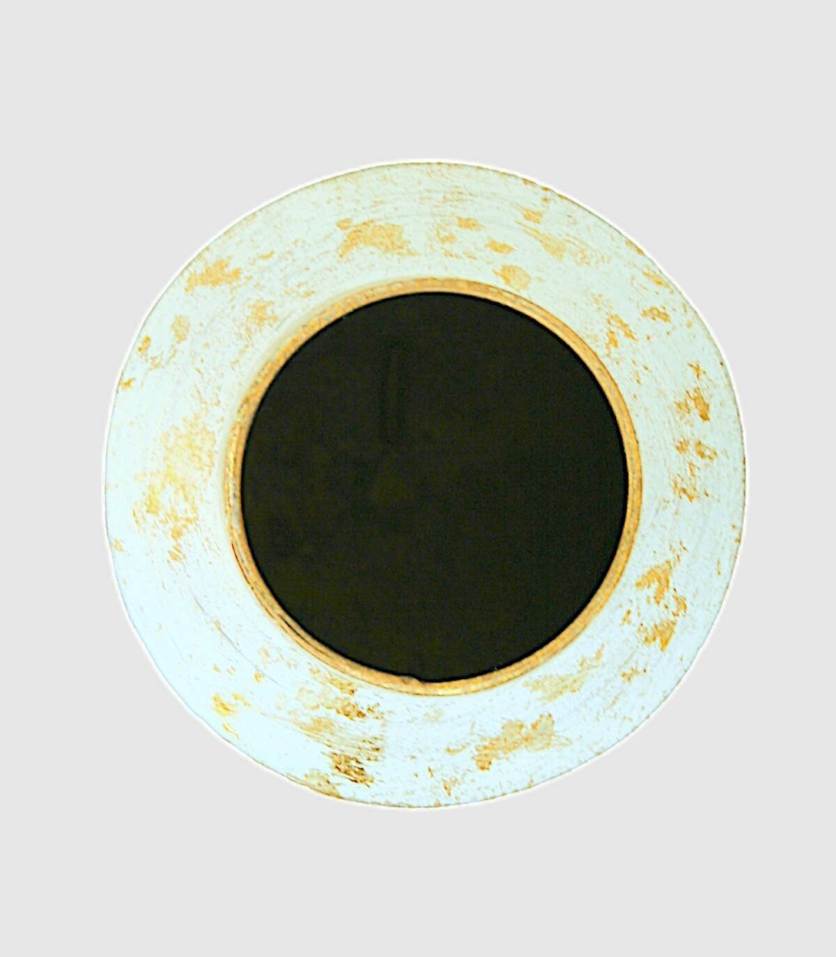 El jarrón se compone de metal pintado de color blanco y verde con lineas doradas en relieve.