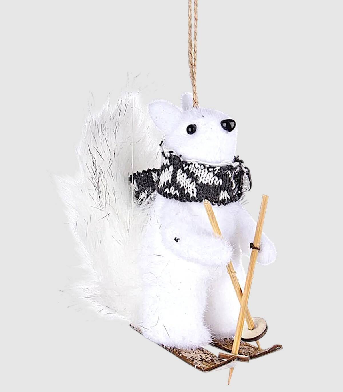 Figura de ardilla de color blanco con esquis.