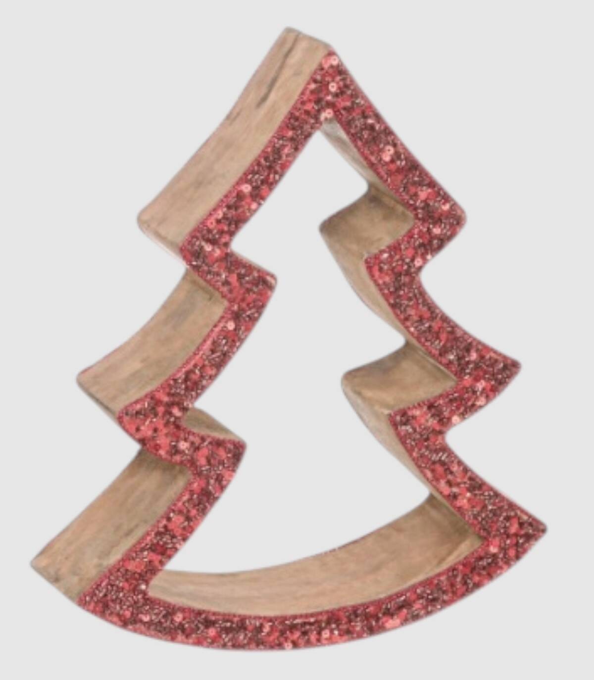 Figura con forma de silueta de pino con contorno rojo efecto purpurina de 30 centímetros de alto por 26 centímetros de largo.