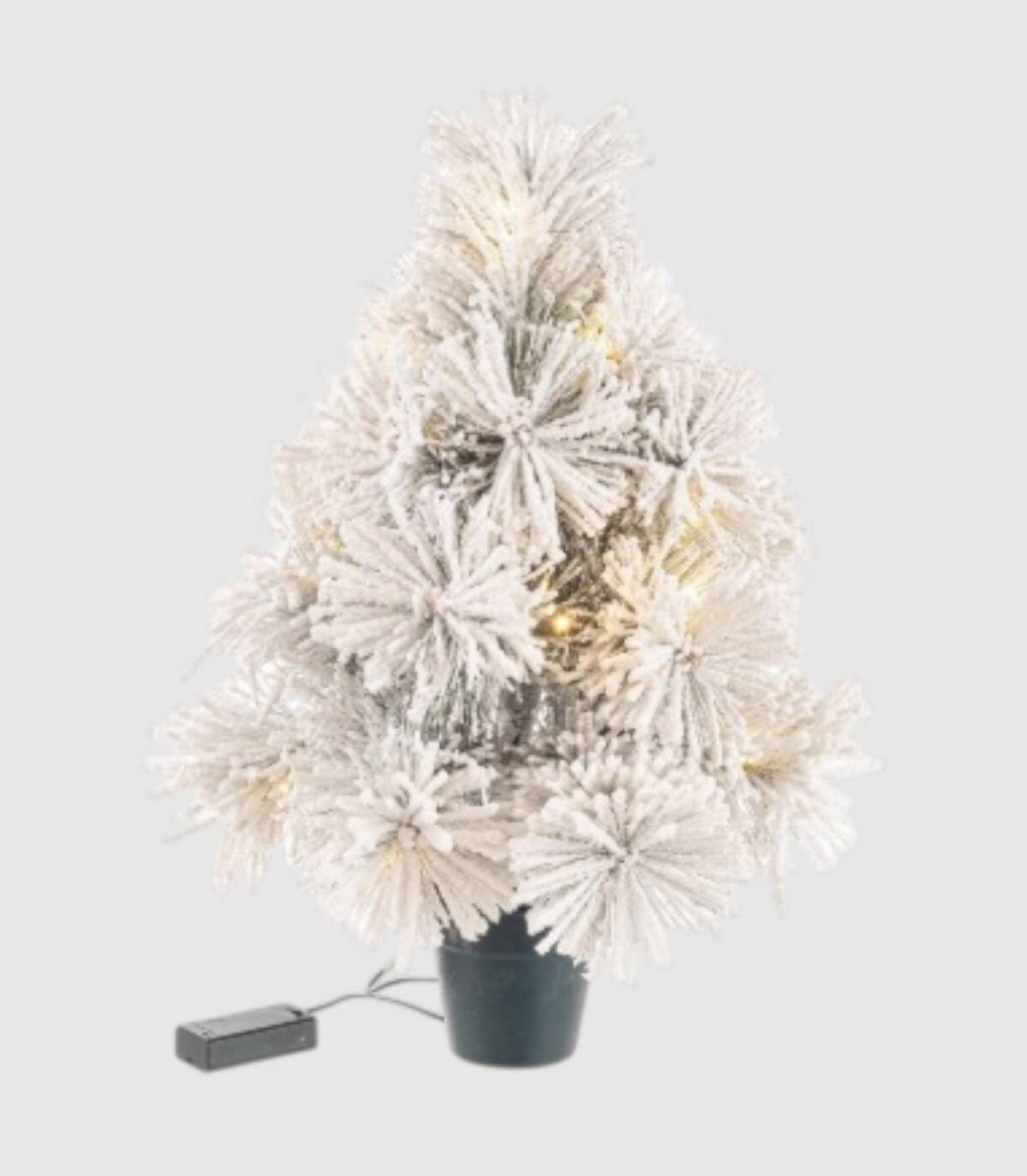 Árbol de navidad efecto nevado con luces para decoración.