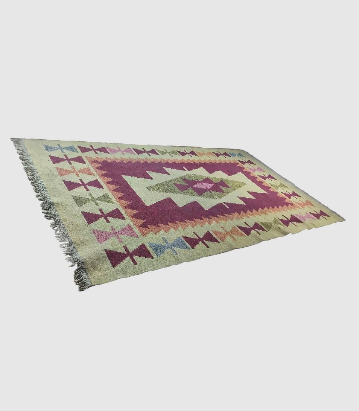 Kilim Baklava rug with fringes It has a viscose fabric, it is perfect for creating cozy and comfortable spaces for your home on your own, its current style will complete any room with elegance.