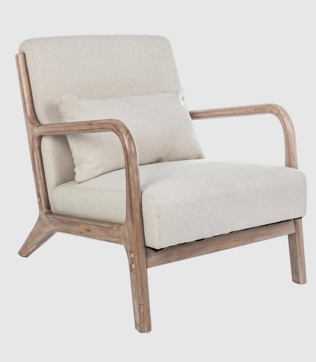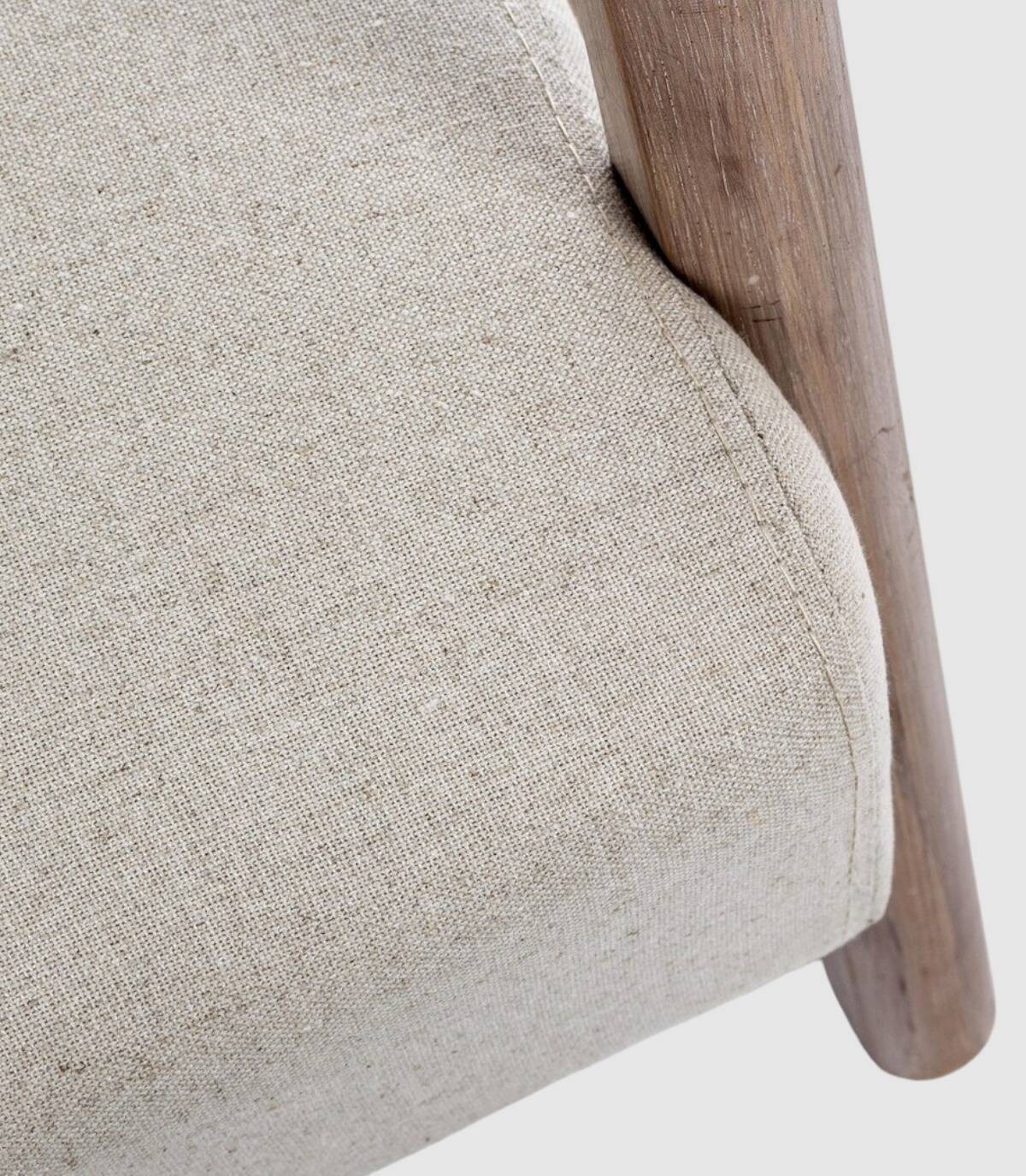 Ancilla armchair w-cushion: Elegant armchair with rubber wood frame. Non-removable fabric seat cover (40% cotton, 30% polyester and 30% linen).