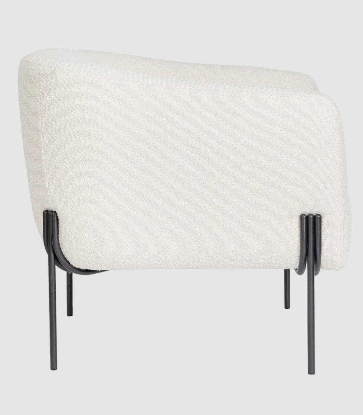 The gray Claudine armchair plywood structure, epoxy powder coated steel legs, loop-effect polyester coating, seat filling density 28kg/m3, backrest 20kg/m3. Not removable cover. The legs require assembly.