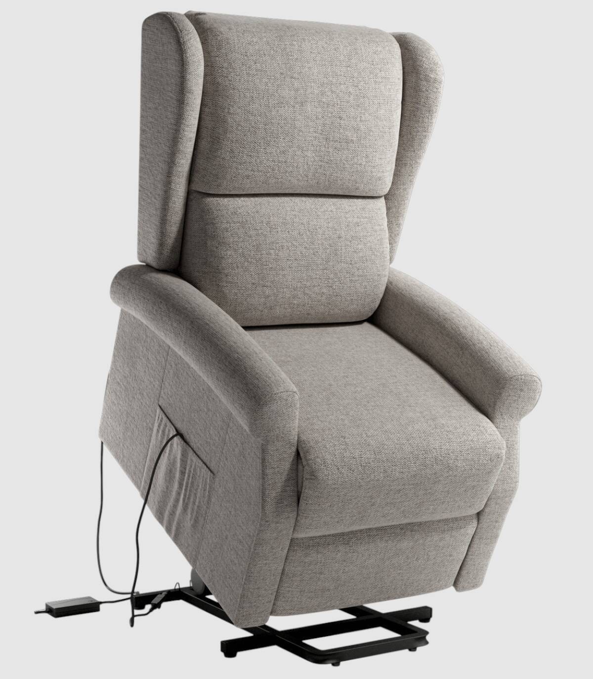 Read moreShow lesswith electric power-lift It consists of a metal structure and seat, backrest, and armrests upholstered in pearl color.