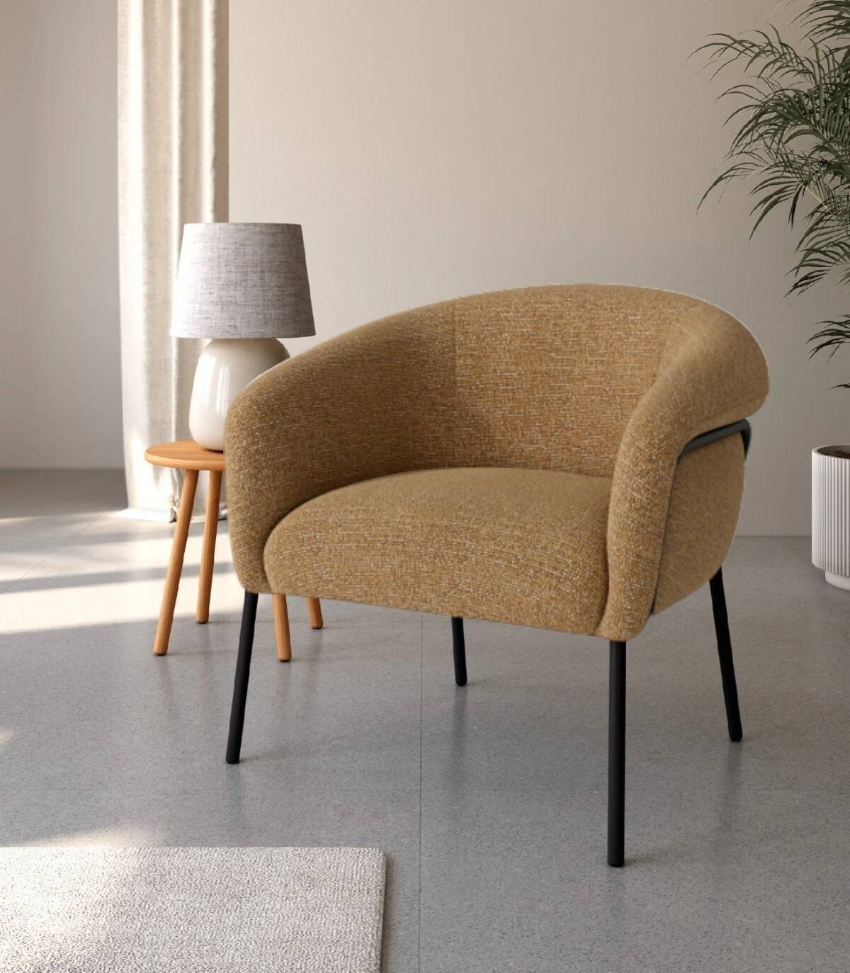Read moreShow lessIt consists of a seat, backrest, semicircular upholstered armrests and four black painted metal legs.