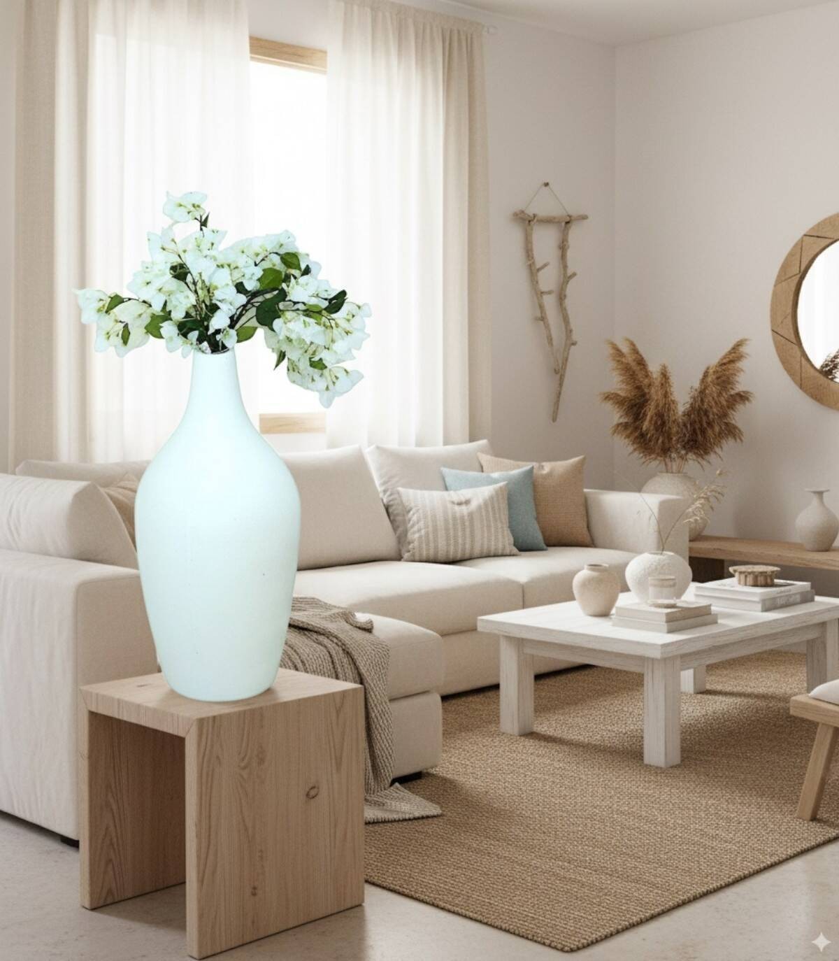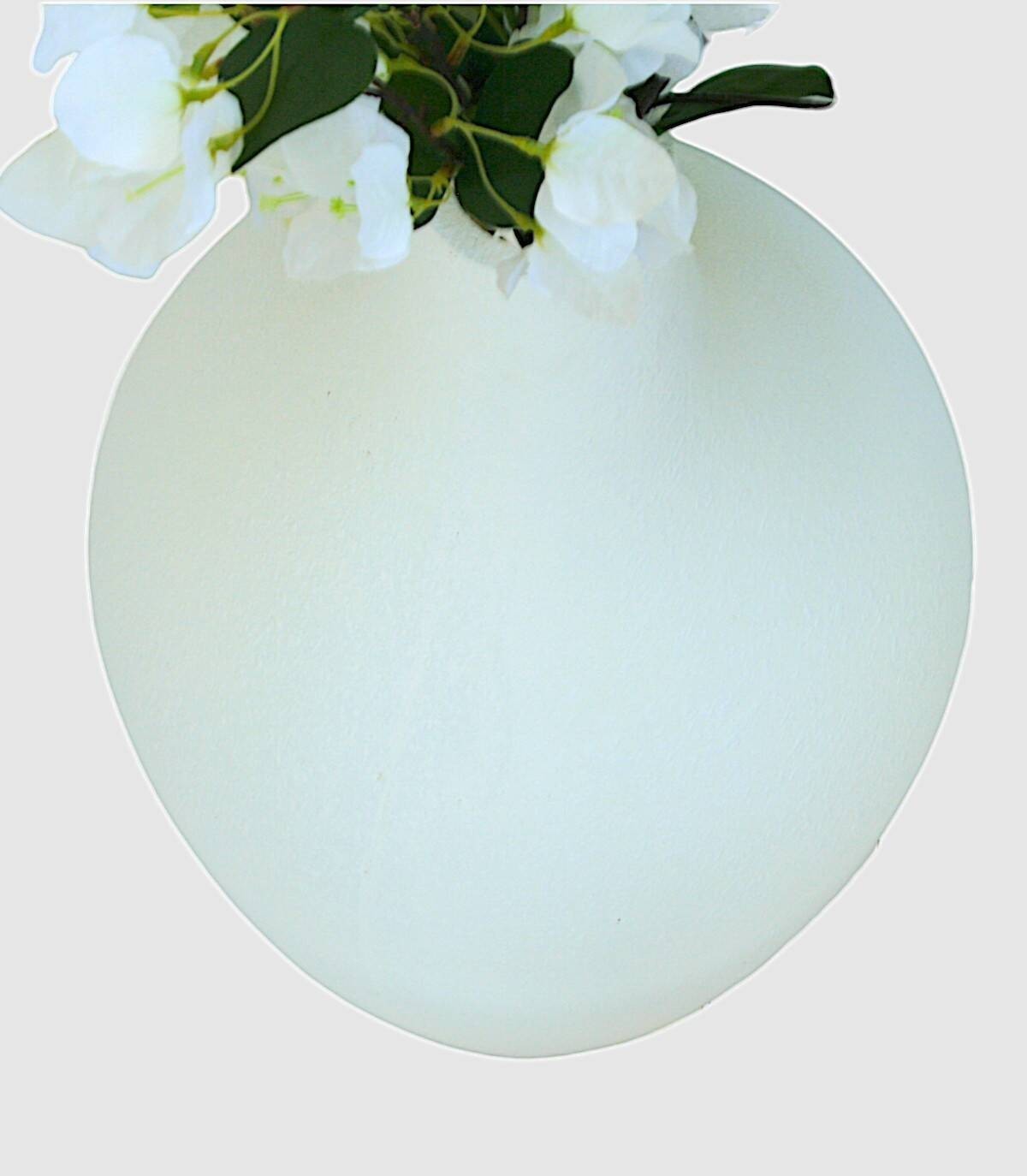 The large round white vase is made of terracotta.