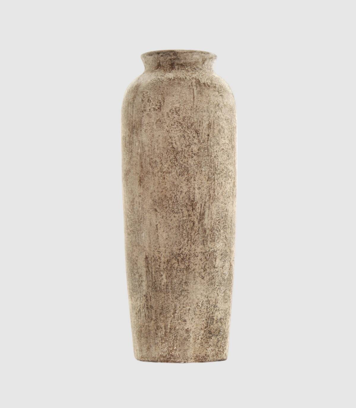 Antique grey terracotta Vinculo vase, This distressed grey terracotta vase is a unique handcrafted piece that will add a rustic and elegant touch to any space. Its matte finish and rough texture create a captivating vintage effect. Its simple yet attractive design makes it a versatile addition to traditional or modern interior decor. Enjoy the timeless beauty of this distressed terracotta vase in your home.