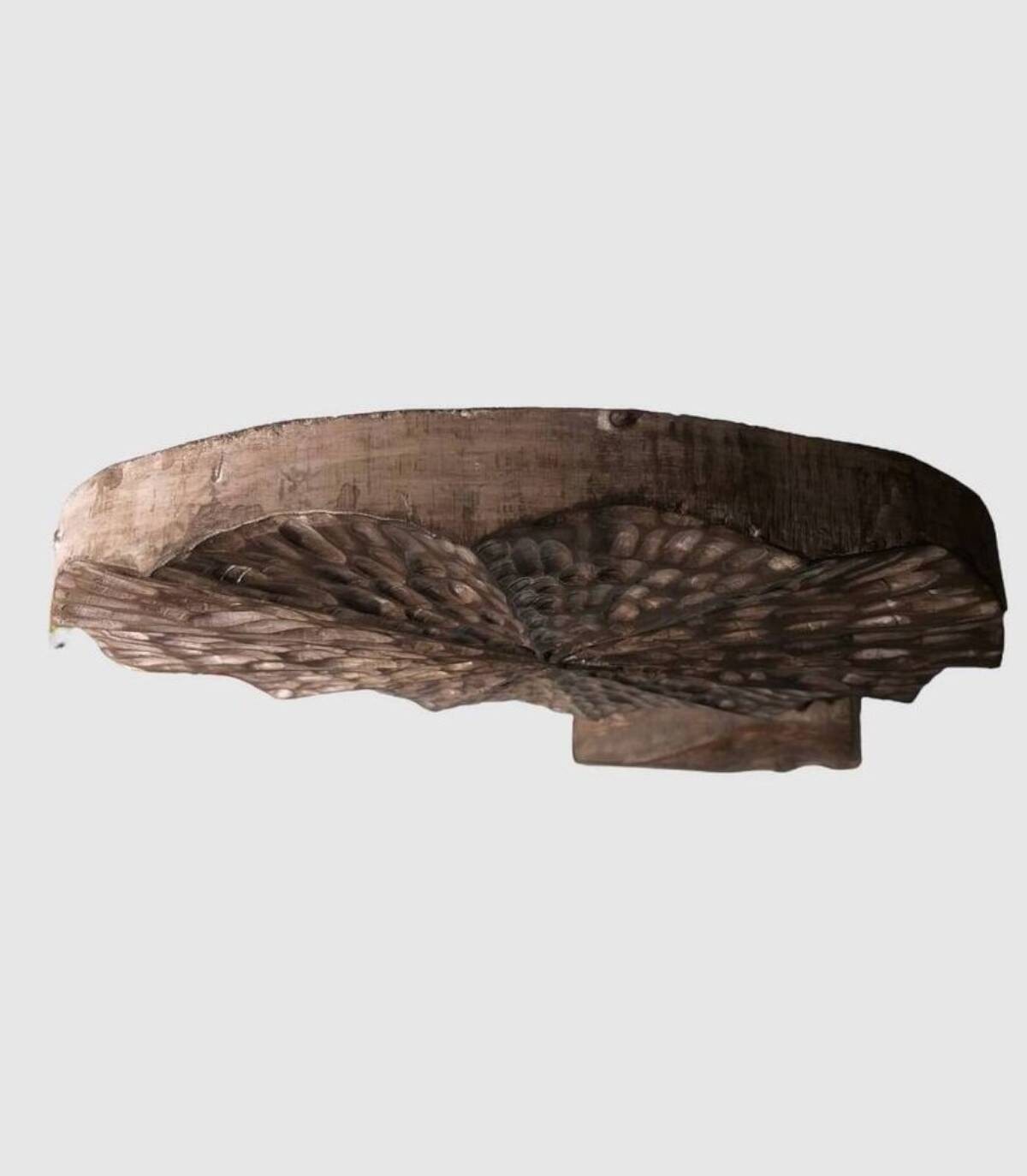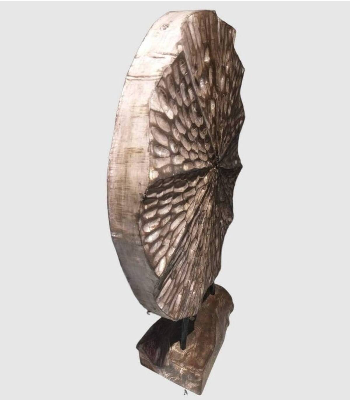Hand-carved wooden trunk figure with wood and metal base. It has measurements of 64x50x15 centimeters.
