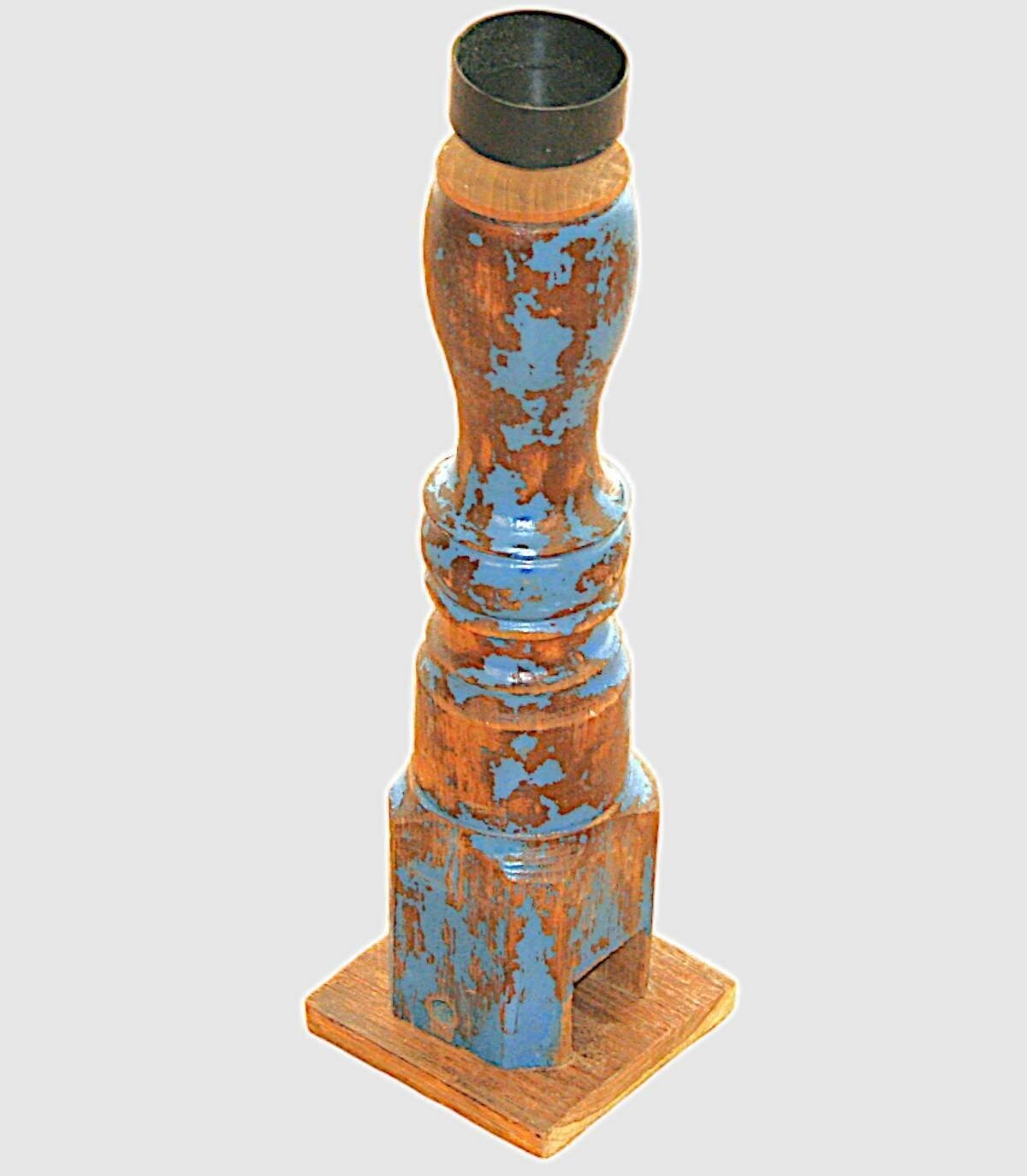 Wooden candle holder with blue details,
