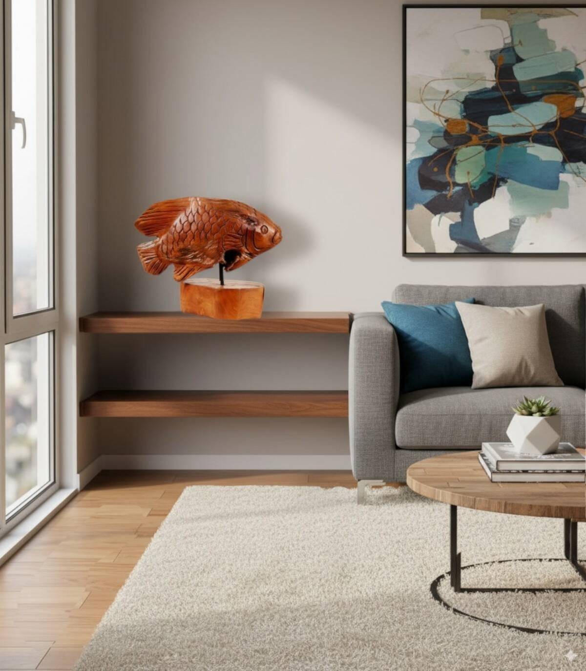Teak wood fish with stand.