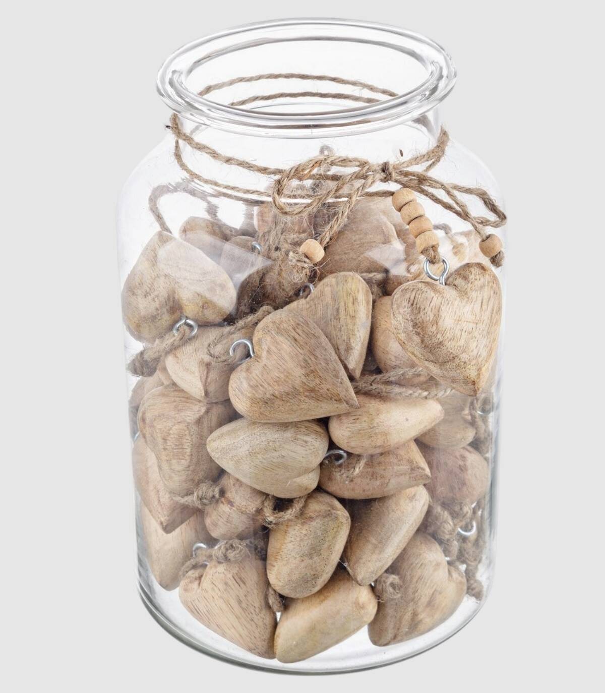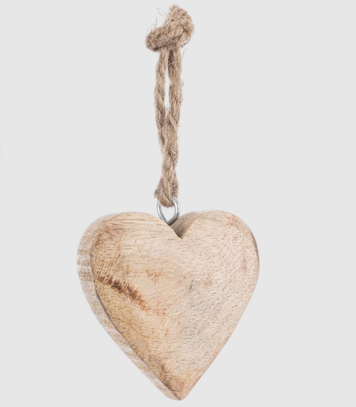 Figura con forma de corazón de madera con cordel para colgar.