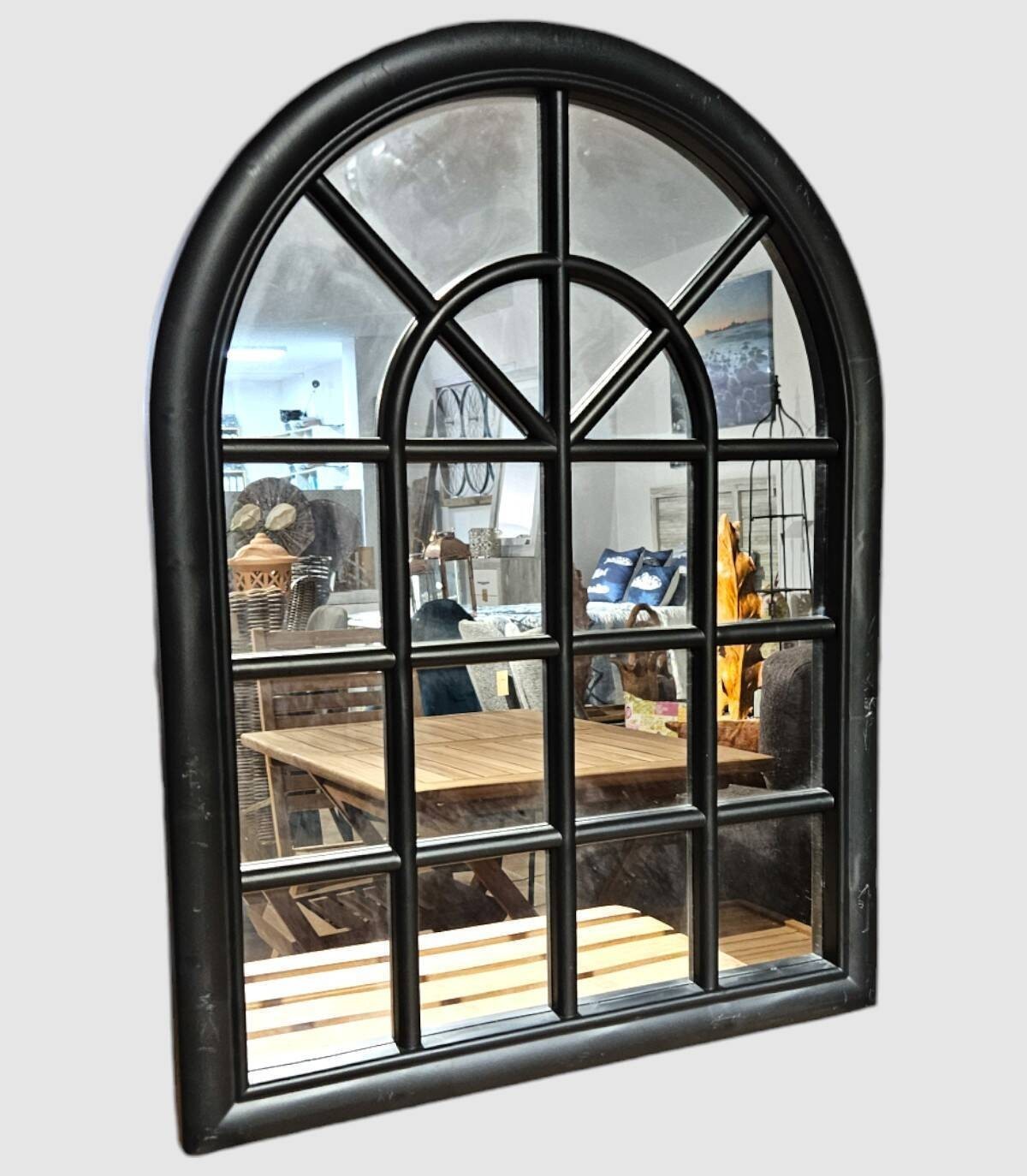 This elegant window-style mirror is a unique décor piece that will add a touch of character to any space. Its archetypal design with a solid black frame and clear glass panels creates the illusion of an old-fashioned window. It perfectly reflects the light and details of the room, creating a sense of spaciousness and depth. This versatile mirror fits into a variety of décor styles, from rustic to modern. Hang this mirror in the living room, bedroom, or hallway to add a distinctive touch to your home. With its durable construction and timeless design, this window-style mirror will be a charming addition to your décor for years to come.
