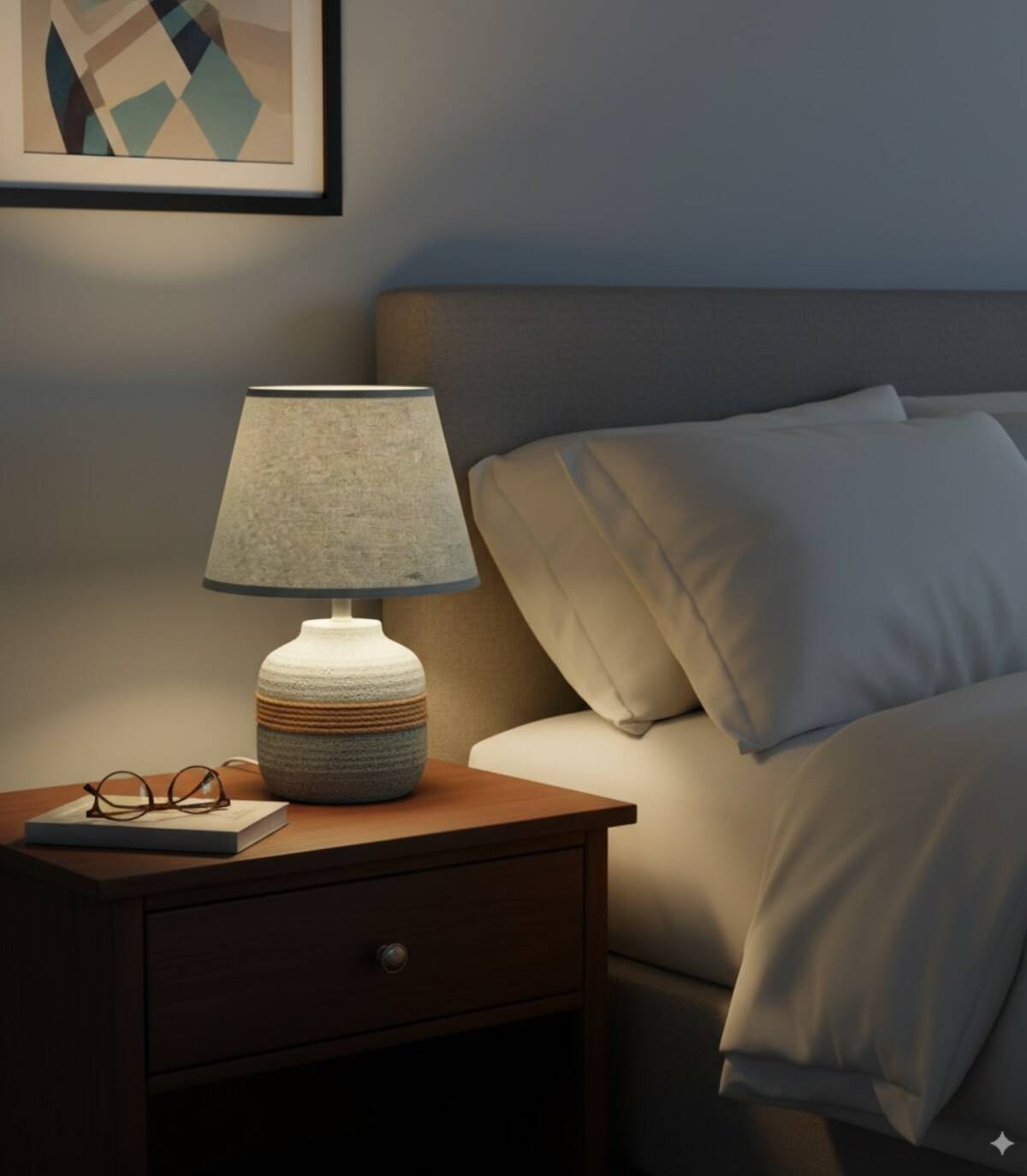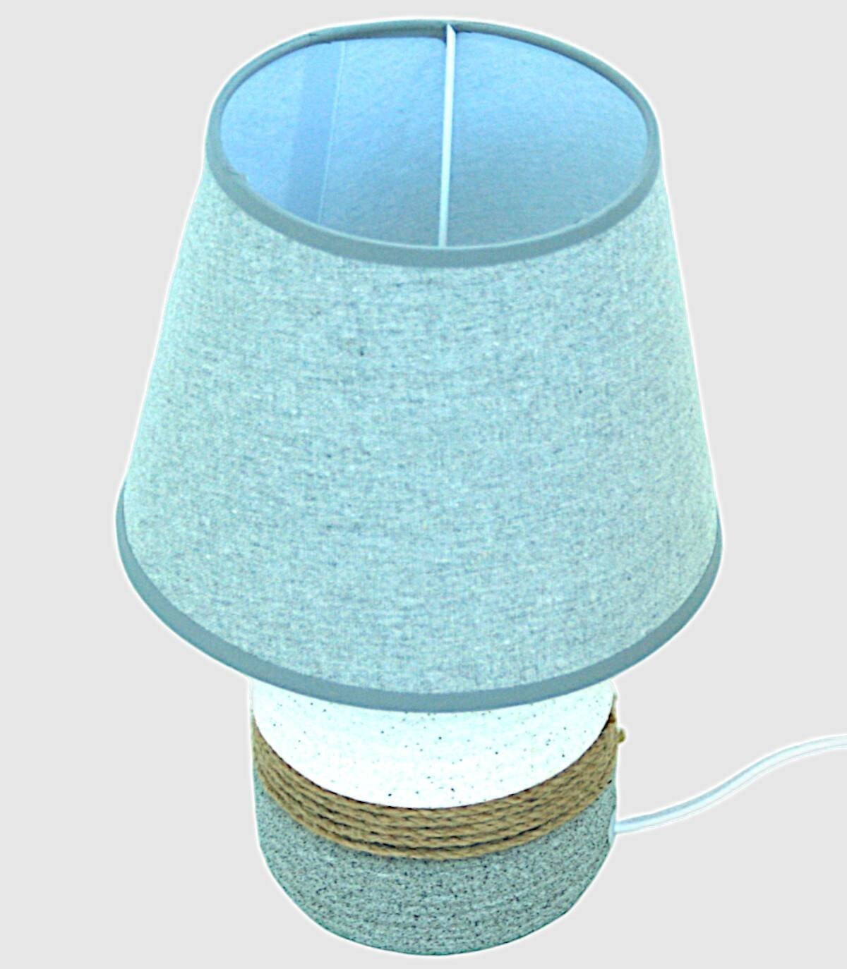Read moreShow lesswhite and grey wrapped with a natural coloured rope, a grey shade and white cable. Bulb not included.