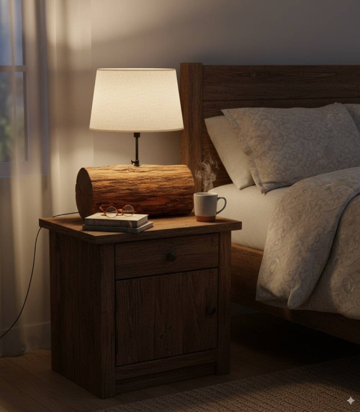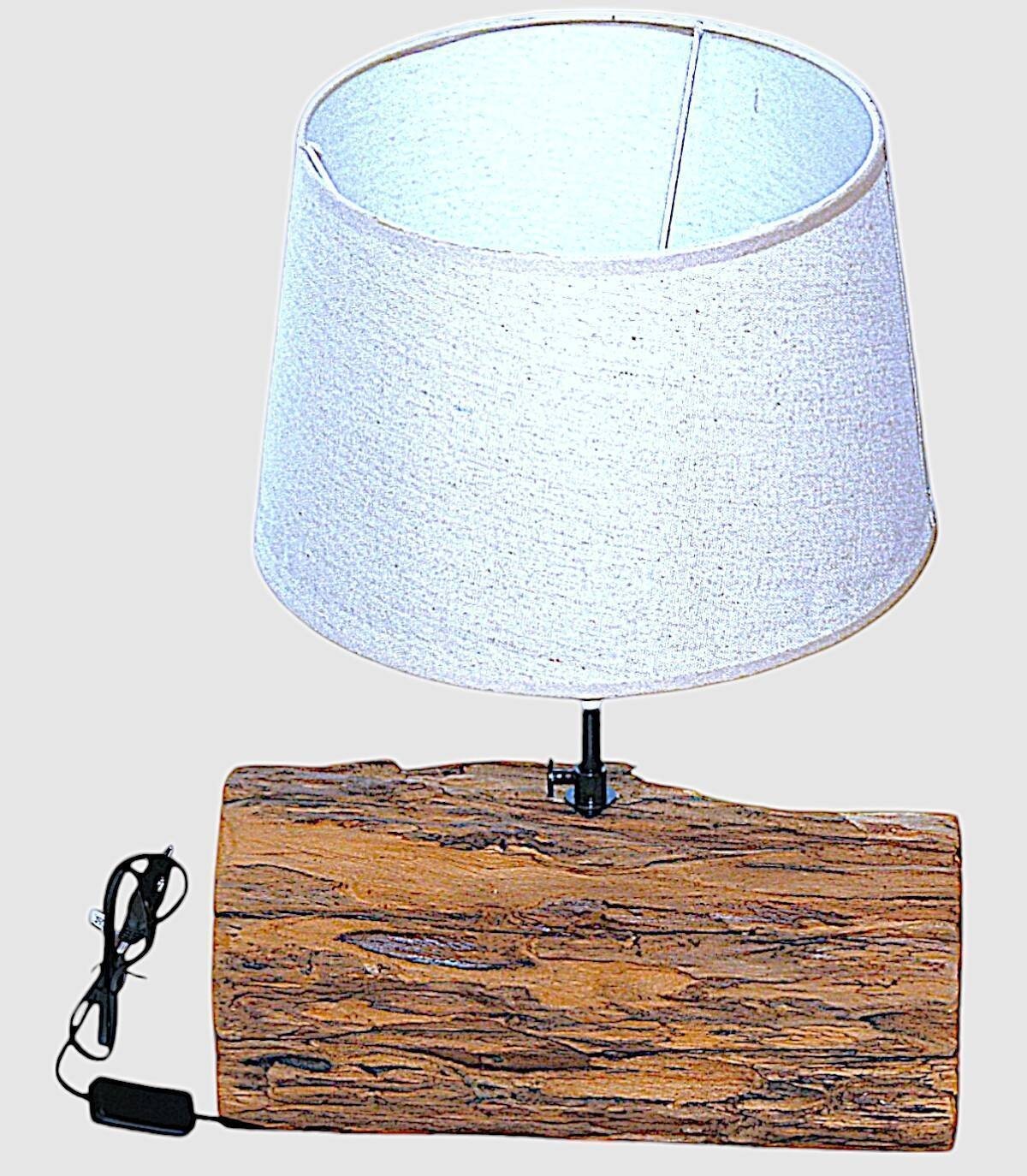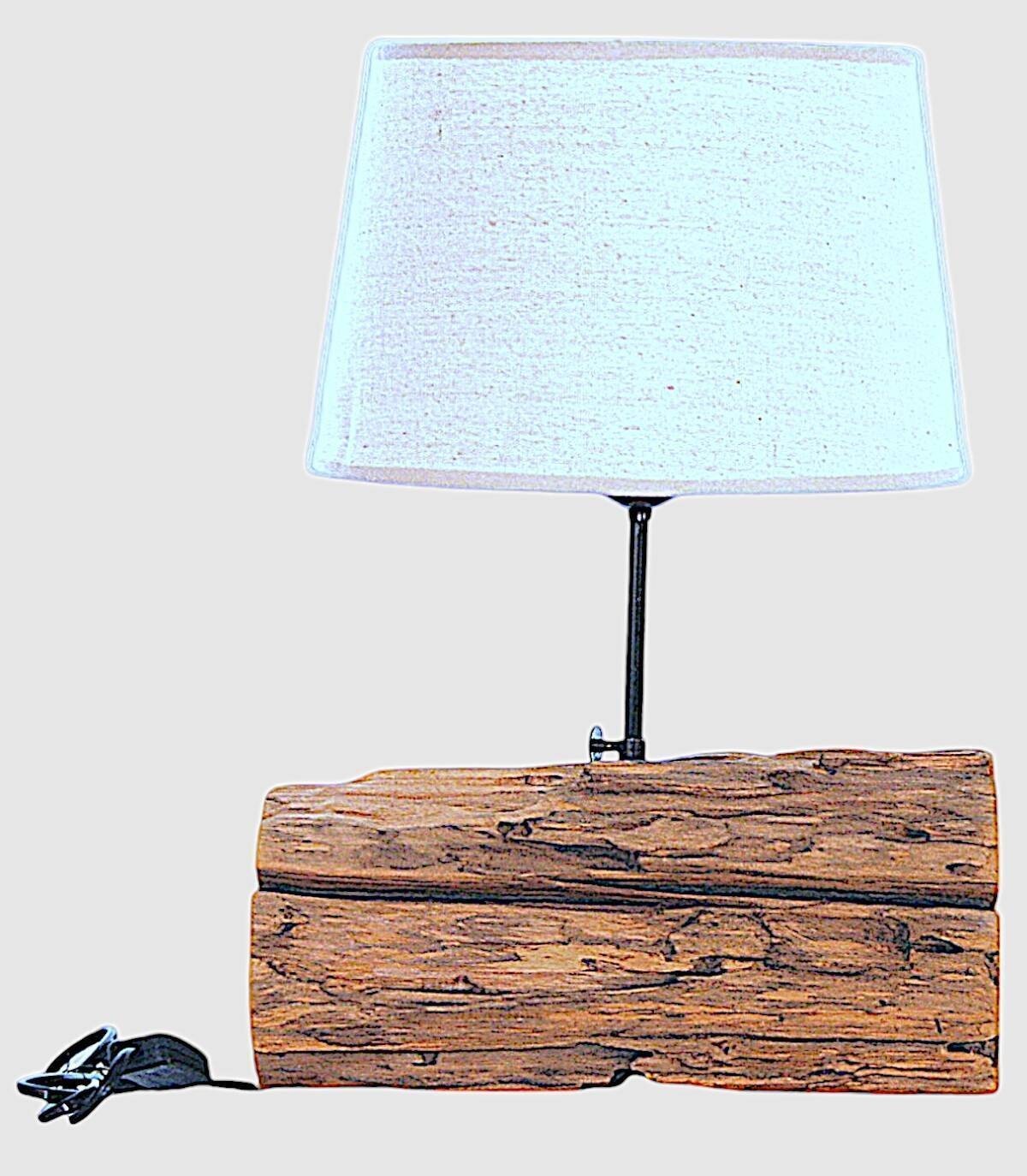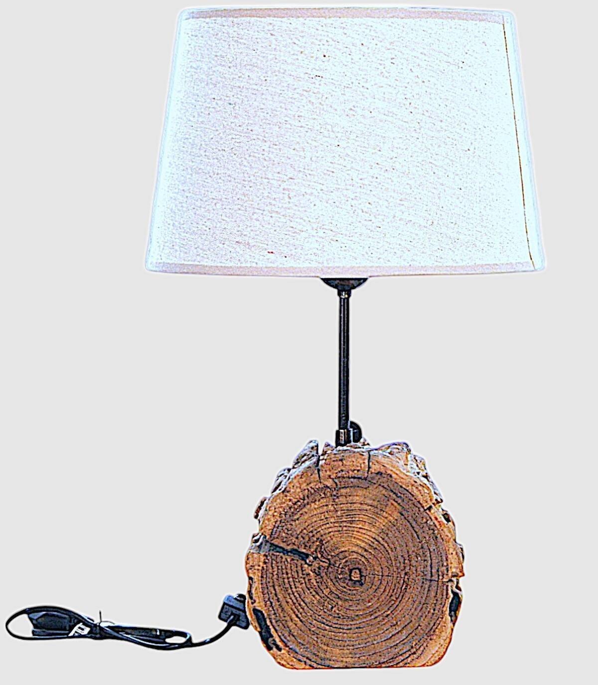 This wooden table lamp brings a rustic and cozy touch to any space. Its unique design combines a natural wooden trunk with a beige fabric shade that diffuses a warm and cozy light. The solid wood base provides stability and durability. This lamp is perfect for creating a relaxing atmosphere in the living room, bedroom or office. It comes with a 1.5 meter long electric cable. It is easy to assemble and requires a standard light bulb (not included). Being handcrafted, we understand the variations in tone, size and shape or certain imperfections (cracks, knots, marks) as an added value that makes it a unique piece.