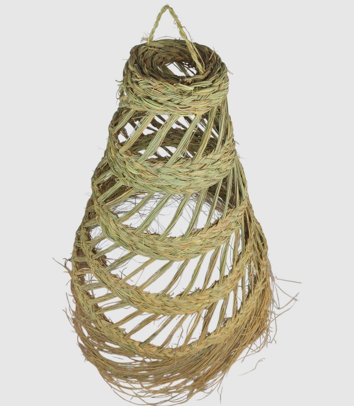 Esta lámpara redonda calada hecha artesanalmente de esparto da un toque étnico en cualquier sitio donde se instale, cambia de color según el uso si se usa en el exterior cambiando a un color mas amarillo. Se ve mucho la luz ya que no está cubierta totalmente de esparto y deja pasar la luz.