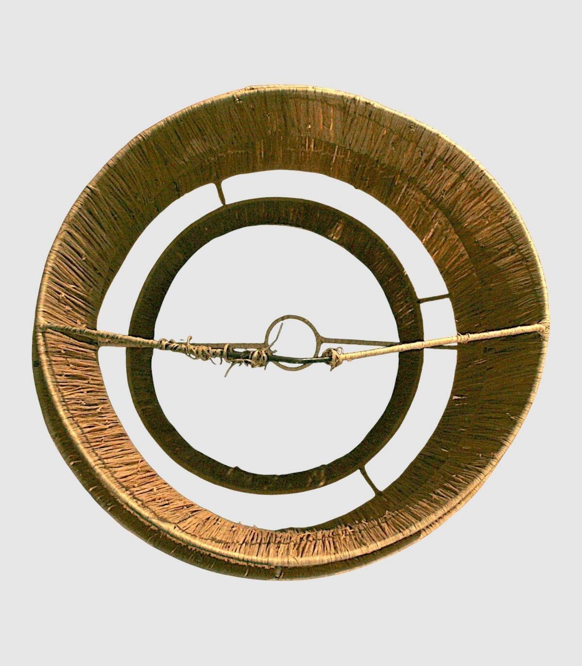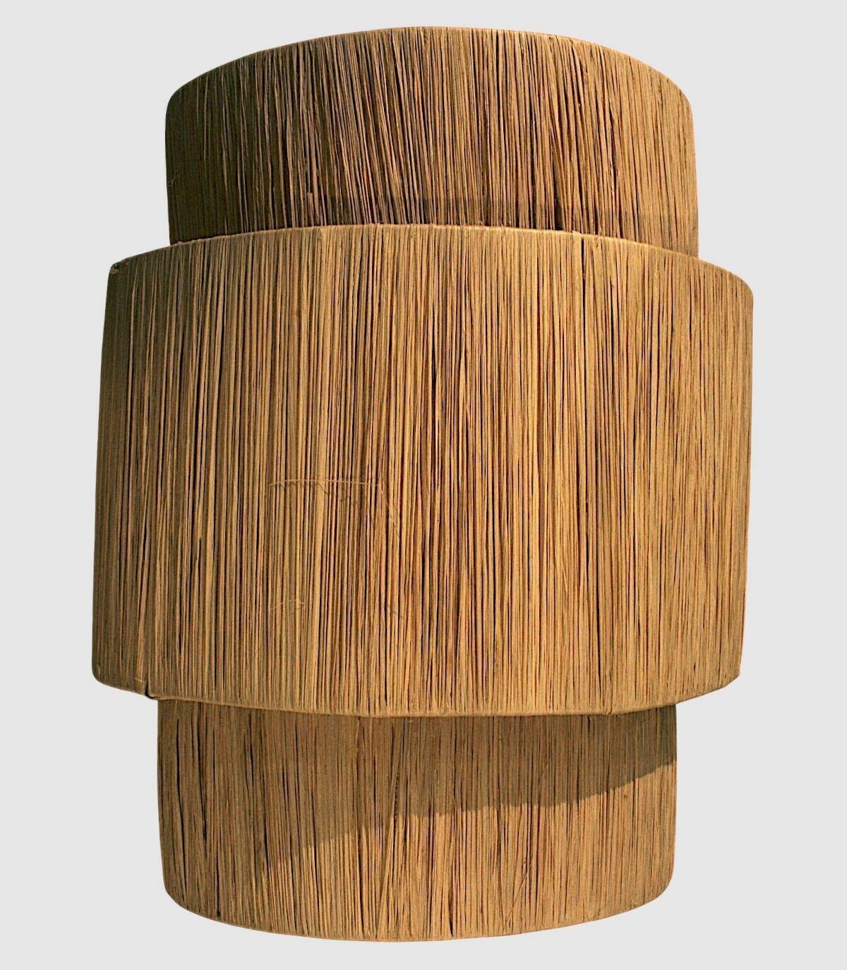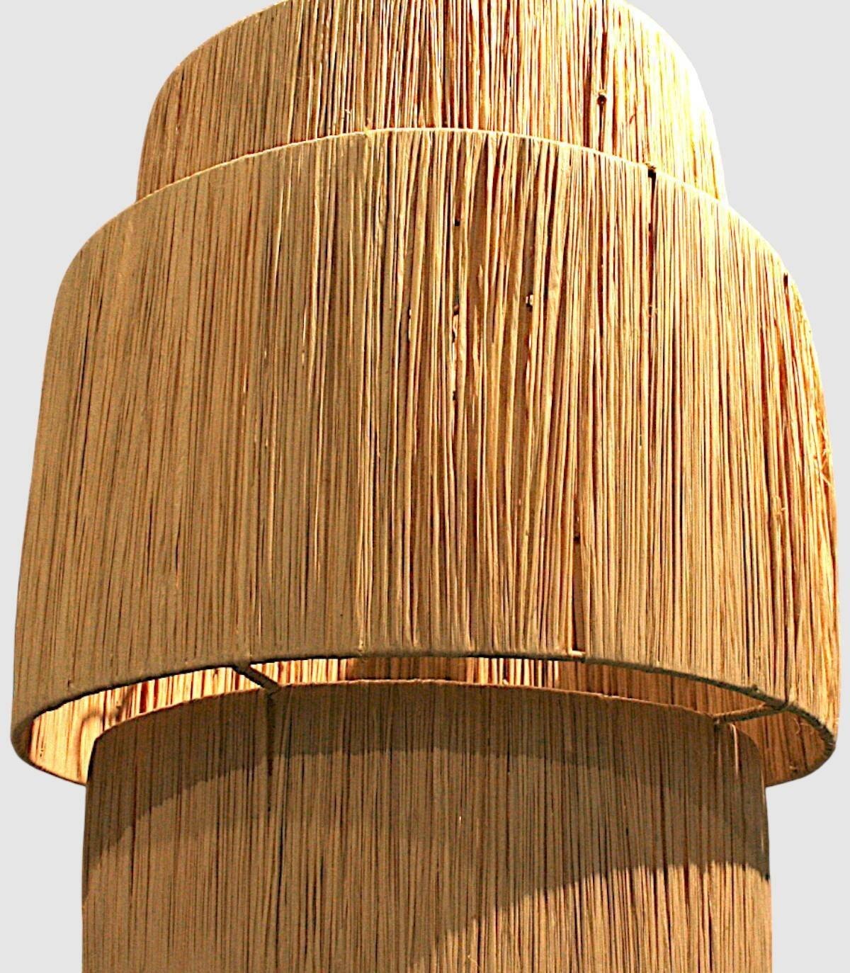 Esta lámpara redonda hecha artesanalmente de rafia y metal da un toque étnico en cualquier sitio donde se instale, cambia de color según el uso si se usa en el exterior cambiando a un color mas amarillo.