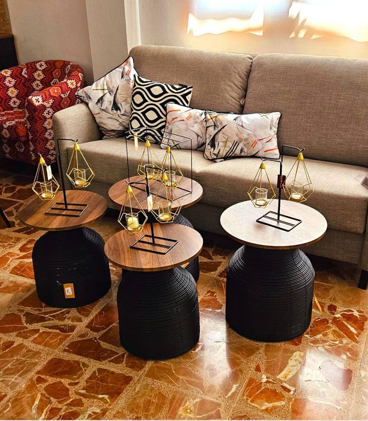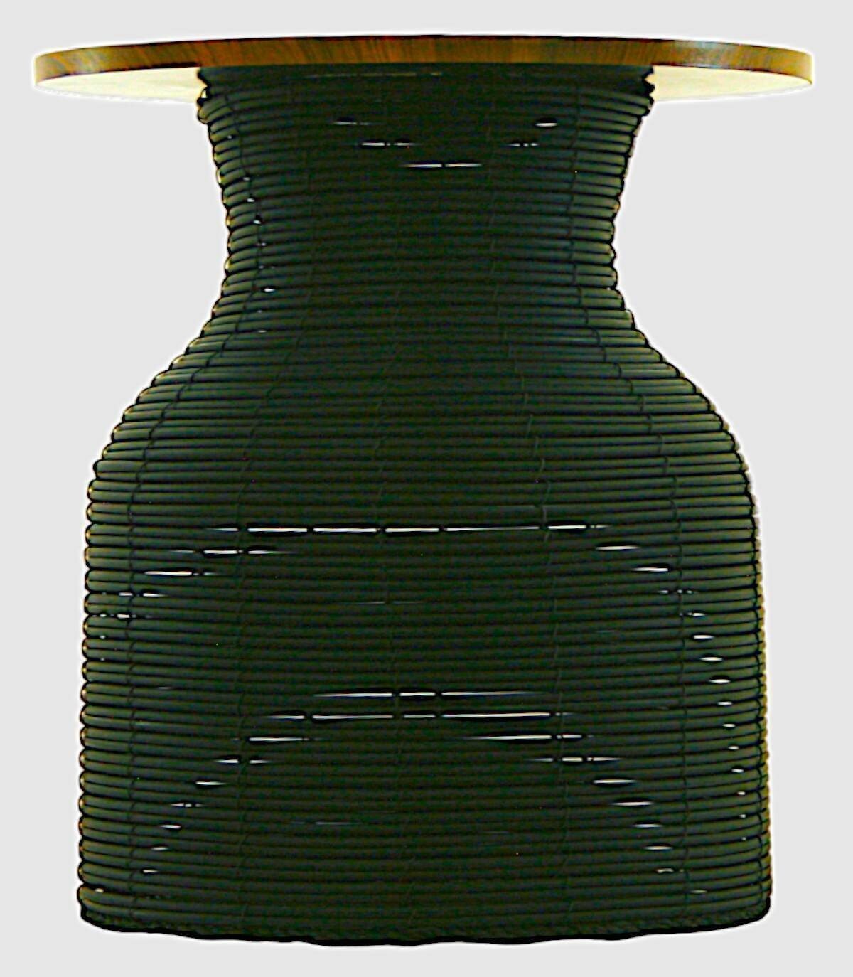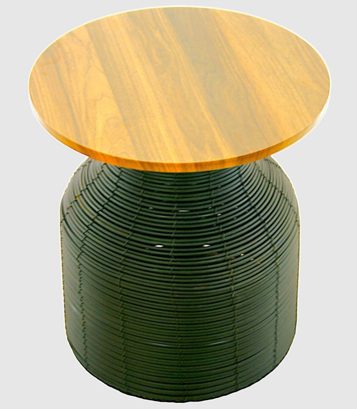 Black rattan table with large wooden top, This elegant black coffee table with natural wood top is a versatile and attractive piece for any living room. Made with high-quality woven rattan, it perfectly combines the beauty of plant fiber with the solidity of wood. Its simple but sophisticated design adapts to a wide range of decorative styles, from rustic to modern. The table measures approximately 45cm high and 40cm in diameter, providing generous space to place magazines, books, drinks or any other decorative accessories. In addition to its aesthetic appeal, this coffee table is incredibly durable and easy to clean, making it a practical investment for your home. Whether you use it as a centerpiece or as a side table, this black table with natural wood top will add a touch of elegance and warmth to your living space.