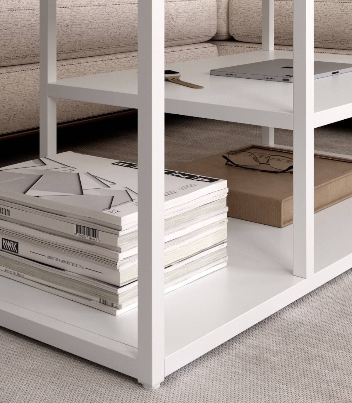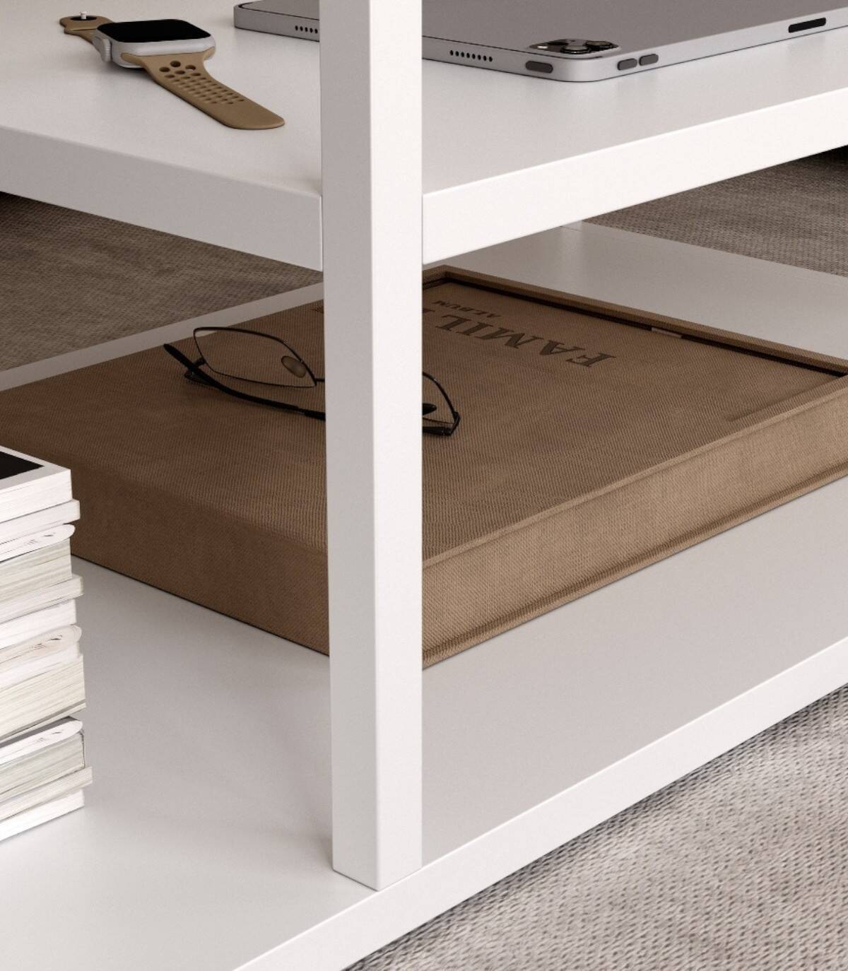 Read moreShow lessIt consists of a cream-colored structure with four legs and three shelves of different sizes.