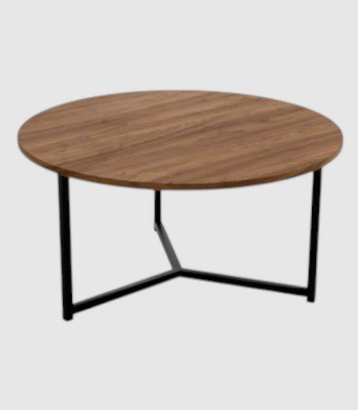La mesa de centro redonda Pacífico se compone de tablero acabado en melaminas sobre estructura metálica pintada de color negro.
