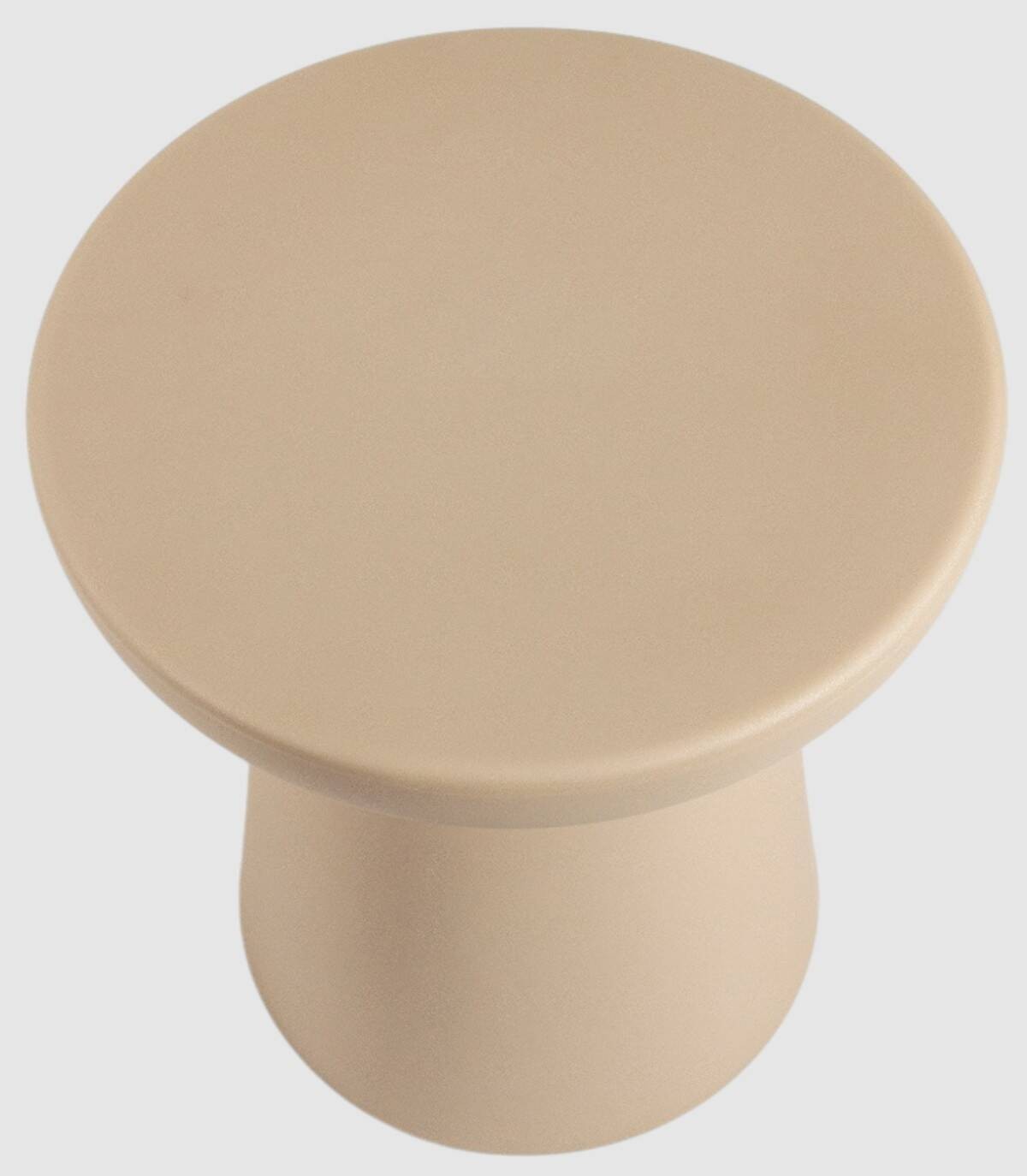 La mesa de centro Borneo redonda de exterior se compone de una pieza de polipropileno con estilo de puntos estilo piedra de color arena.