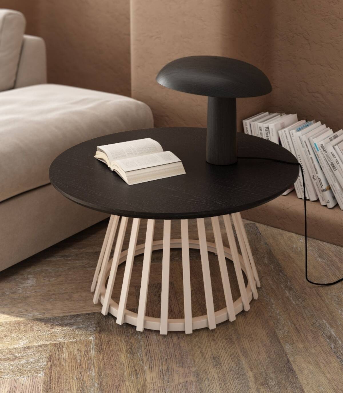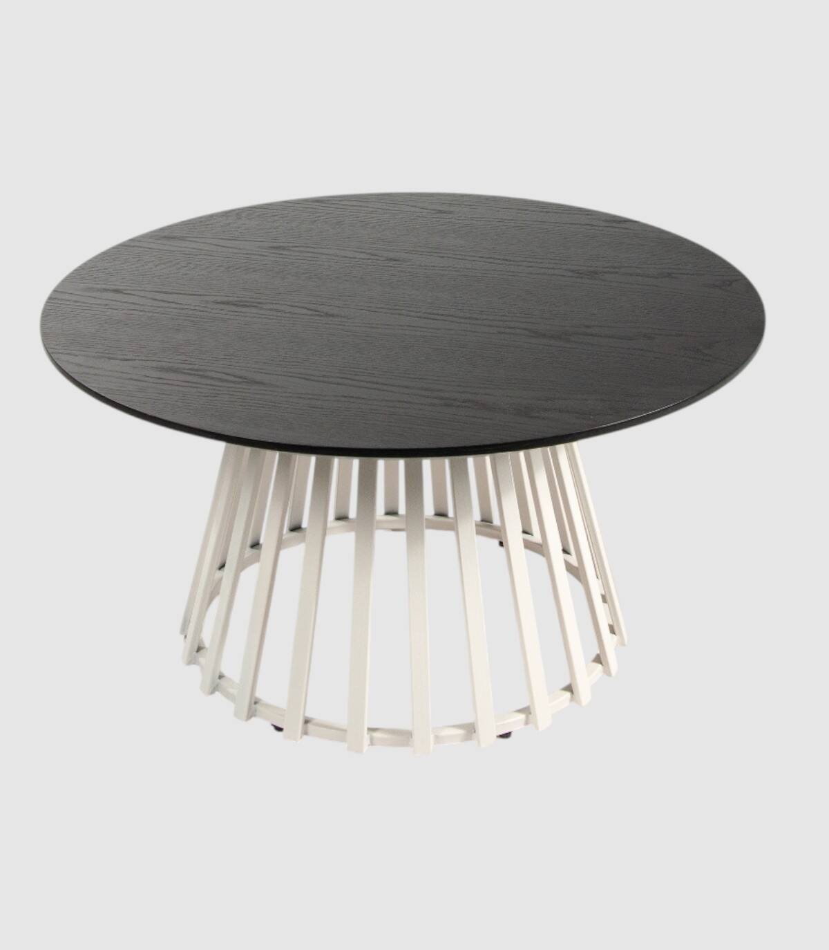 Read moreShow lessIt is made up of a bevelled wooden board with an oak wood finish on a central metal leg in the shape of vertical bars painted in ivory.