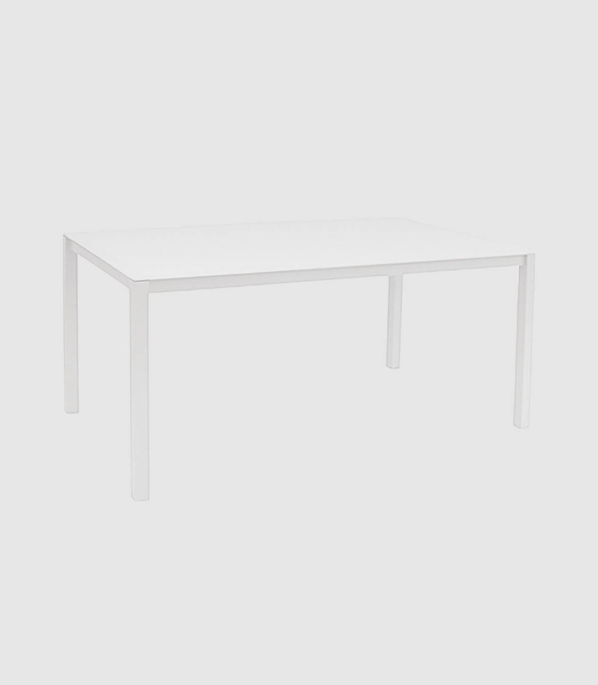 The dining table A It is made of powder-coated aluminum (polyester). It has a smooth rectangular glass top. All 4 legs have non-slip caps.