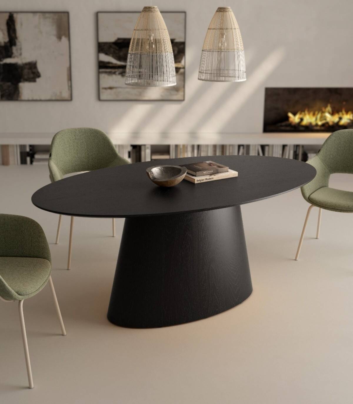 Large Namib black oak oval table