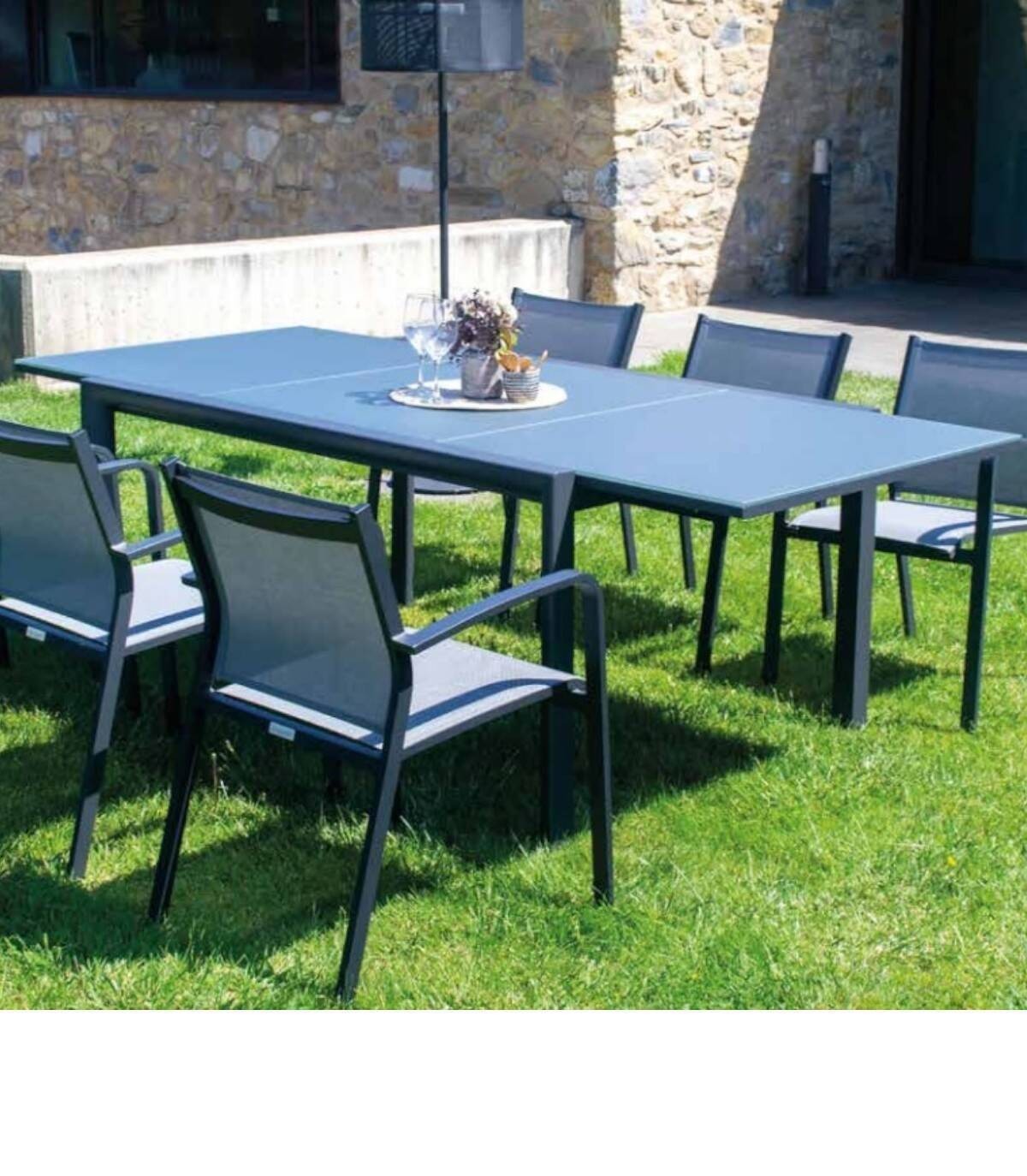 Themis extendable table It is made of powder-coated aluminum (polyester). It has a smooth rectangular glass surface. All 4 legs have non-slip caps.