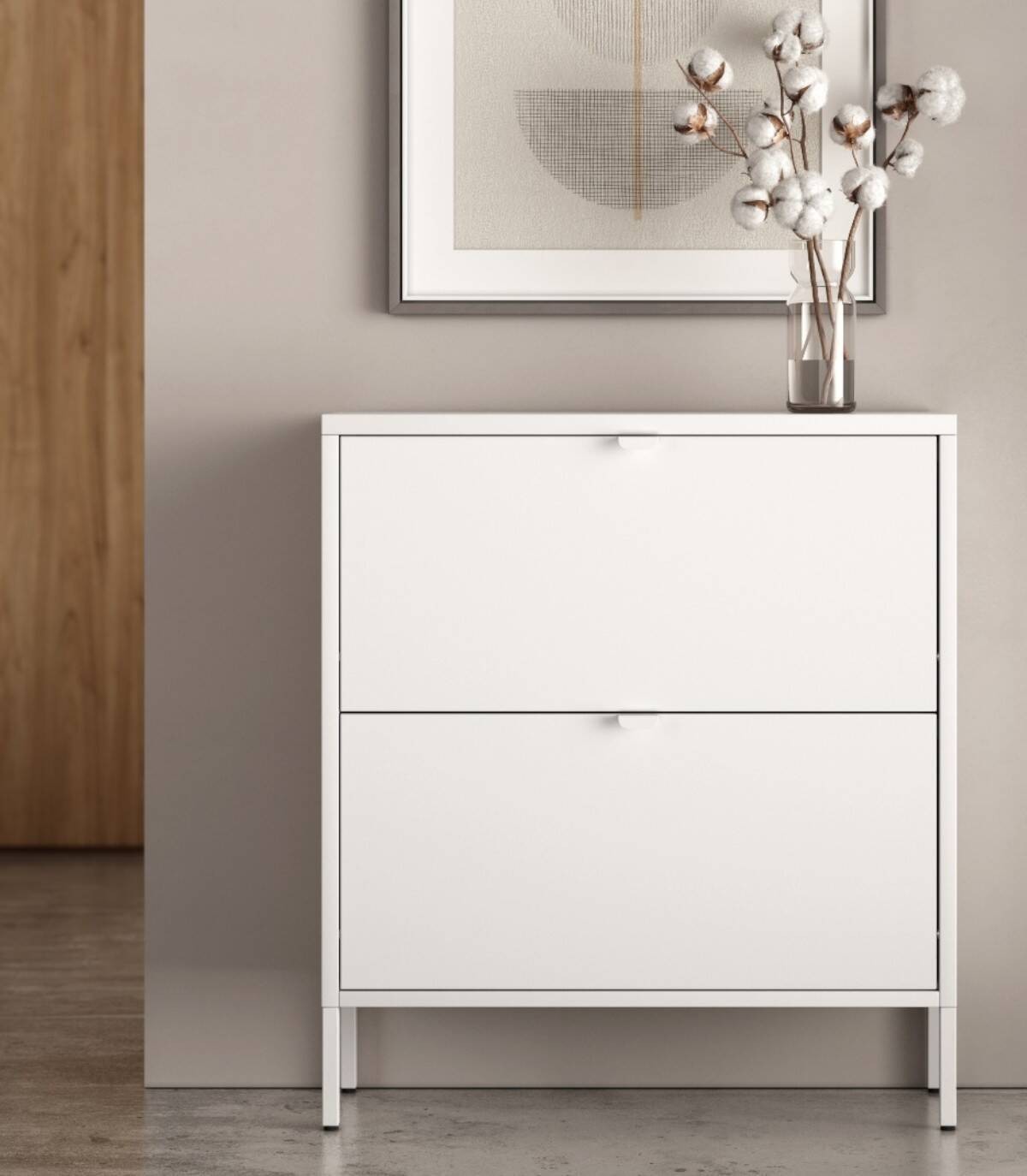 Shoe rack with 2 doors, cream, Titania