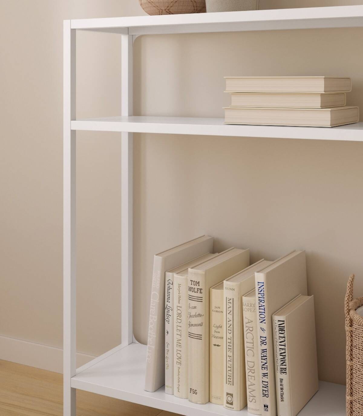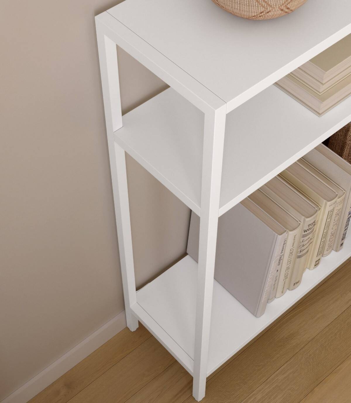 La estanteria Titania grande se compone de estructura de color crema con cuatro patas y tres baldas.