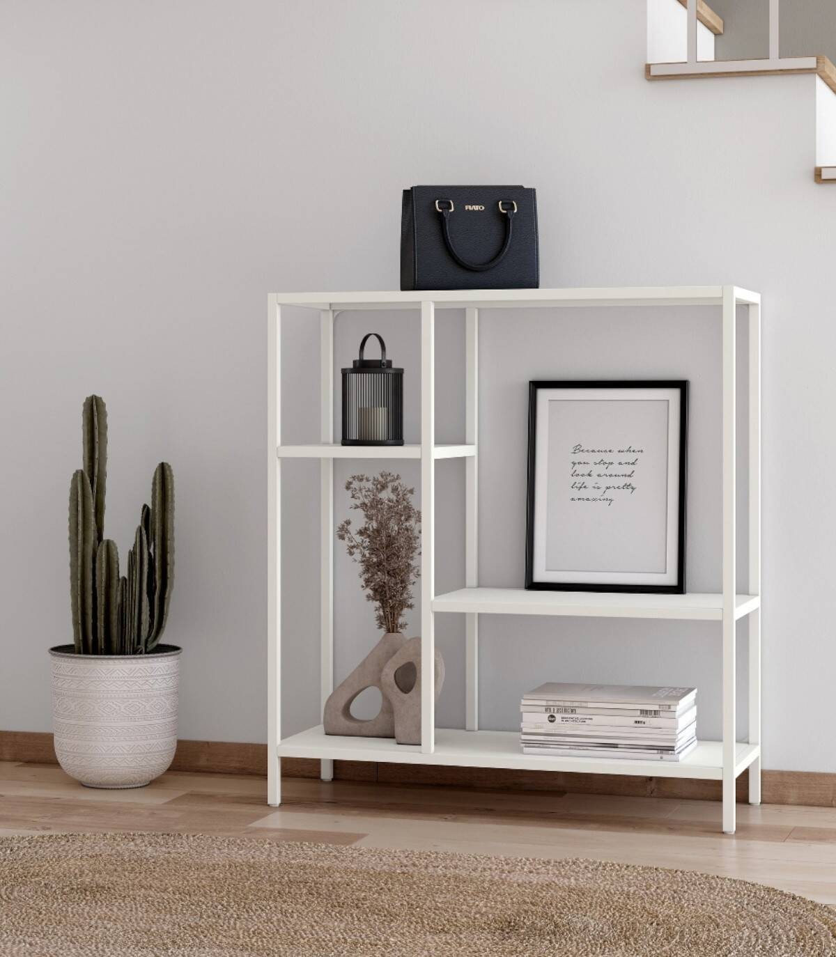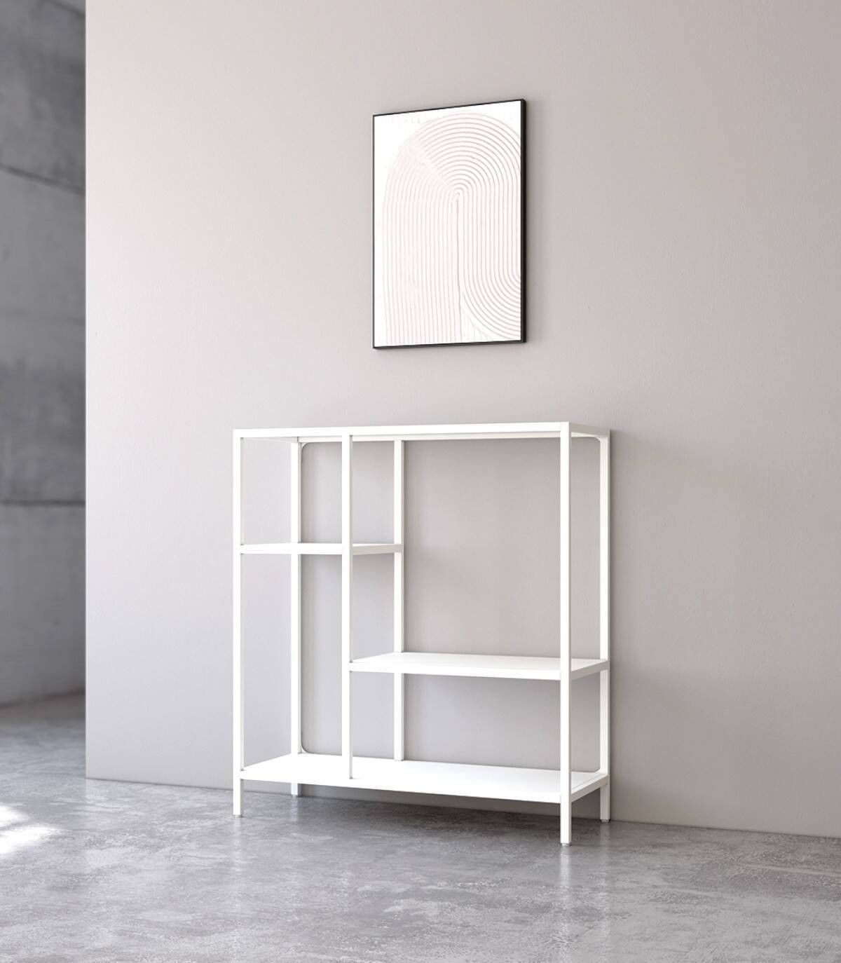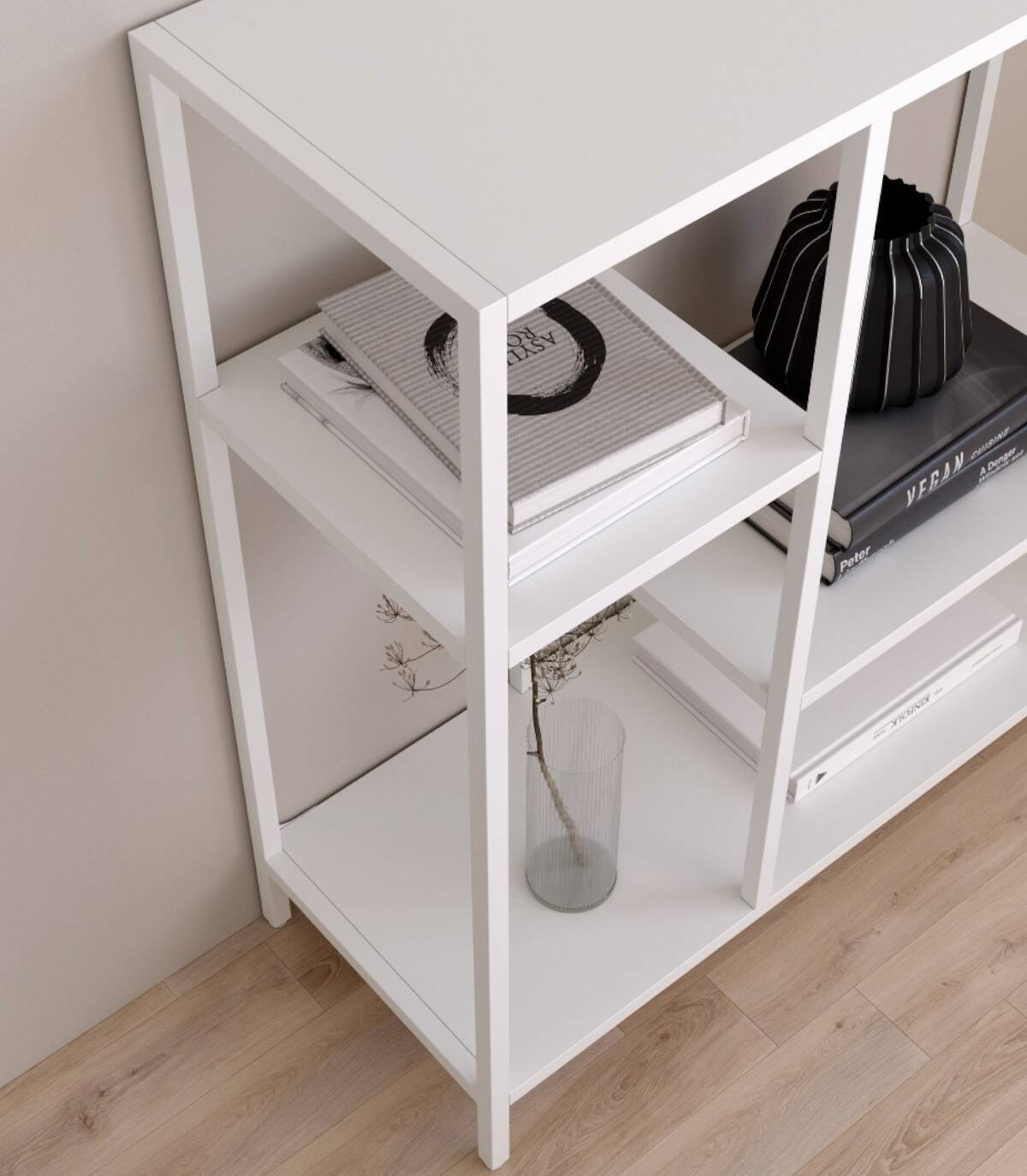 La estanteria Titania grande se compone de estructura de color crema con cuatro patas y cuatro baldas.