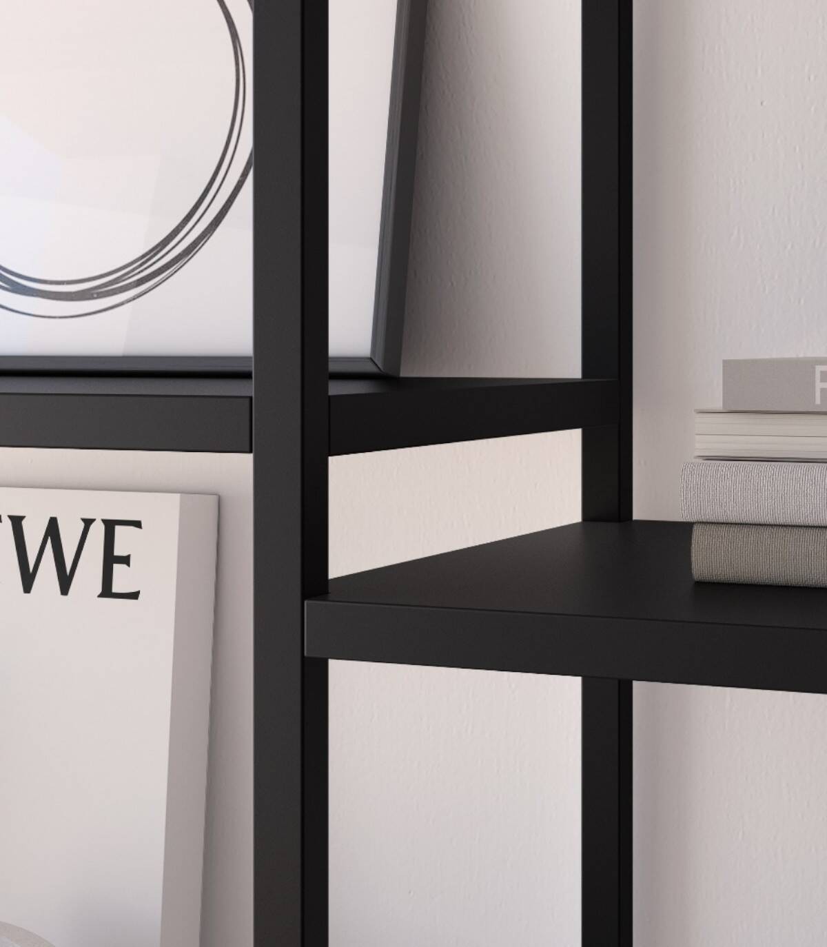 La estanteria Titania grande se compone de estructura de color negro con cuatro patas, diez baldas.