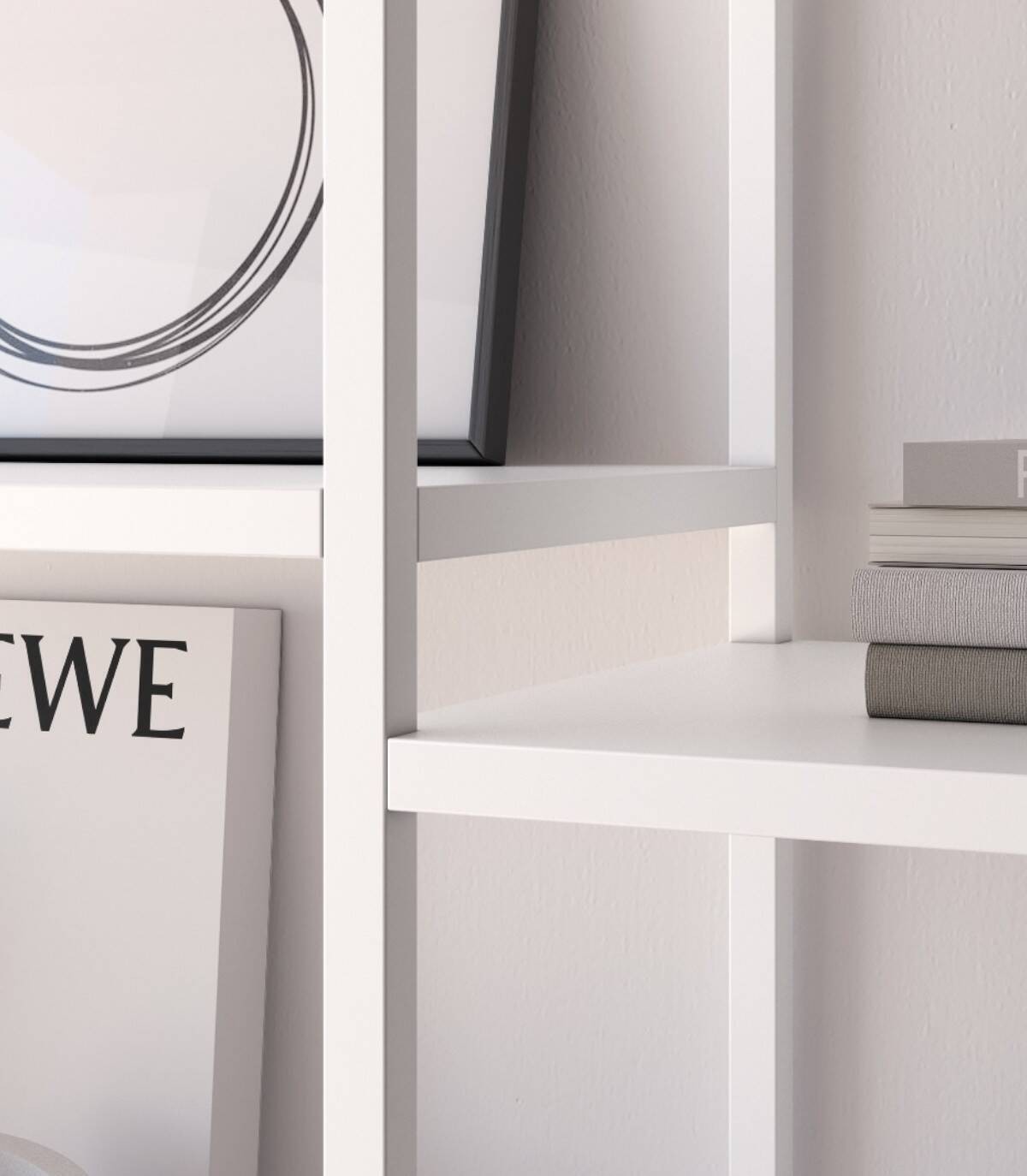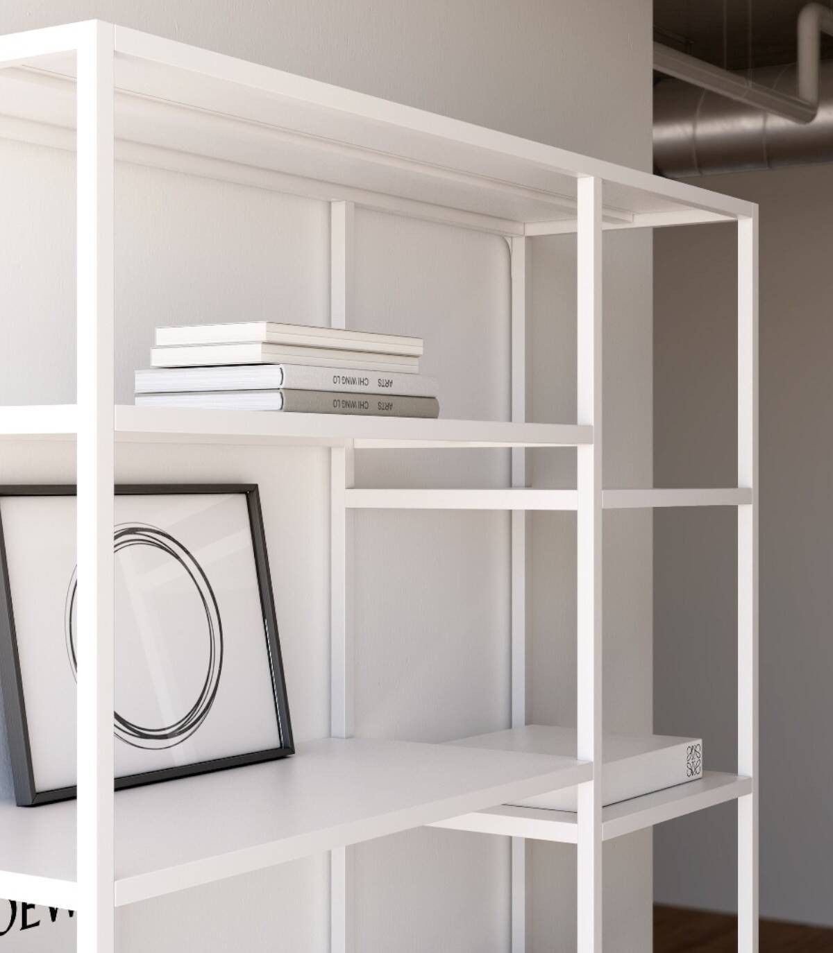 La estanteria Titania grande se compone de estructura de color crema con cuatro patas, diez baldas.