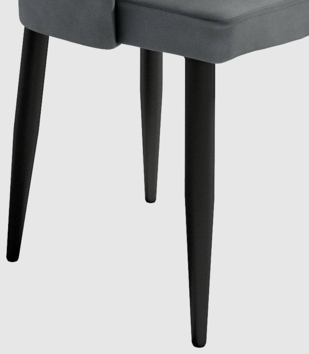 La silla París con asiento y respaldo tapizado, de diseño elegante y moderno, tiene una estructura metálica acabada en color negro.