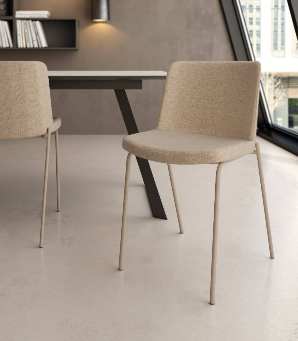 Read moreShow lessIt is made up of an upholstered backrest and seat and metal legs painted in the same colour.