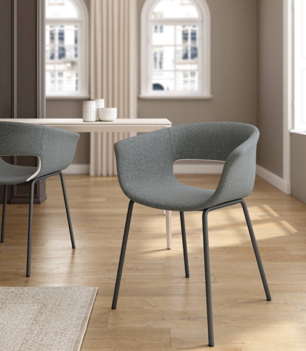 Read moreShow lessIt is made up of an upholstered backrest and seat and metal legs painted in the same colour.