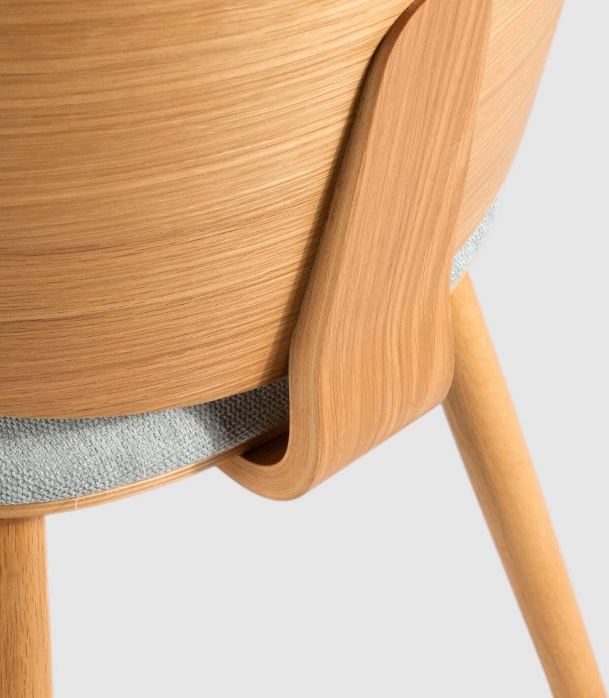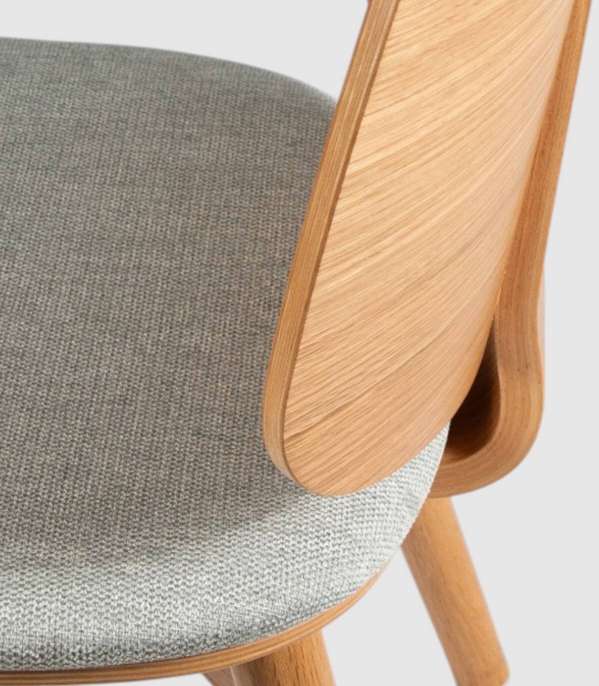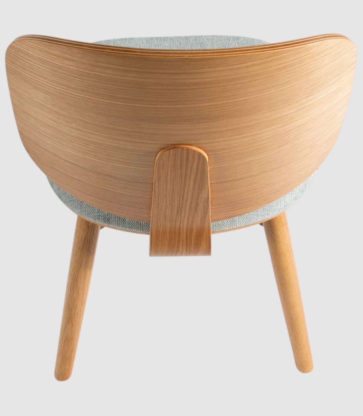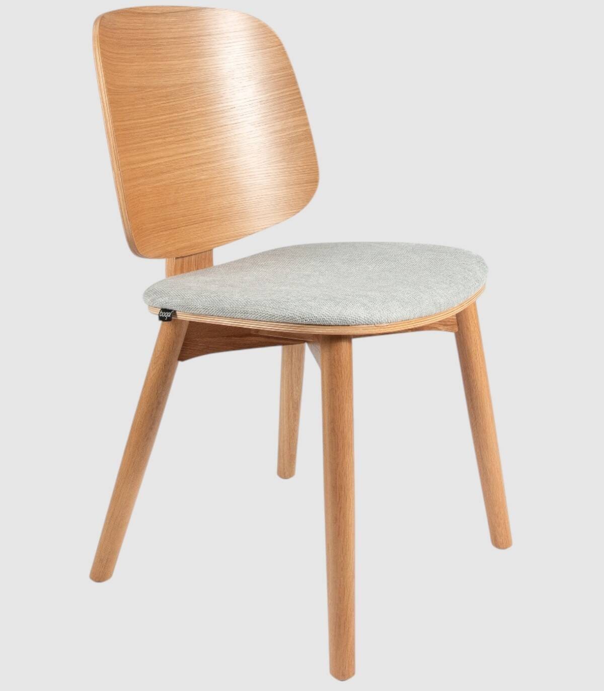 Read moreShow lessIt is made up of a smooth backrest made of natural oak-coloured wood, four wooden legs and an upholstered seat.