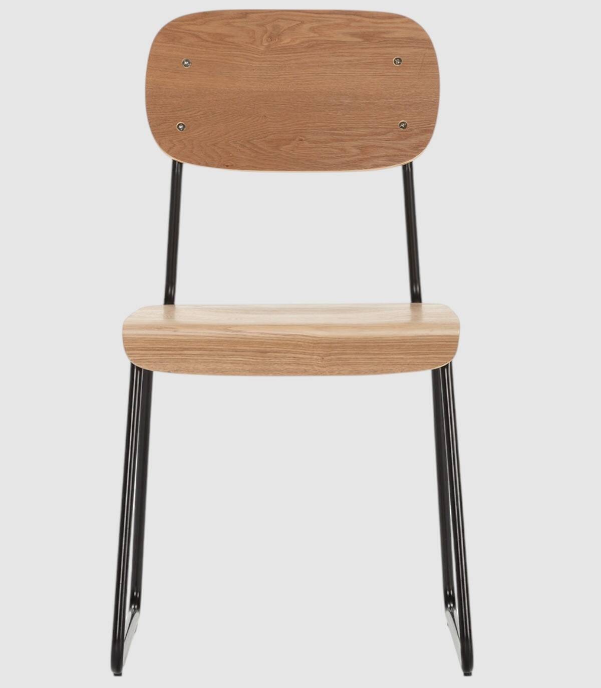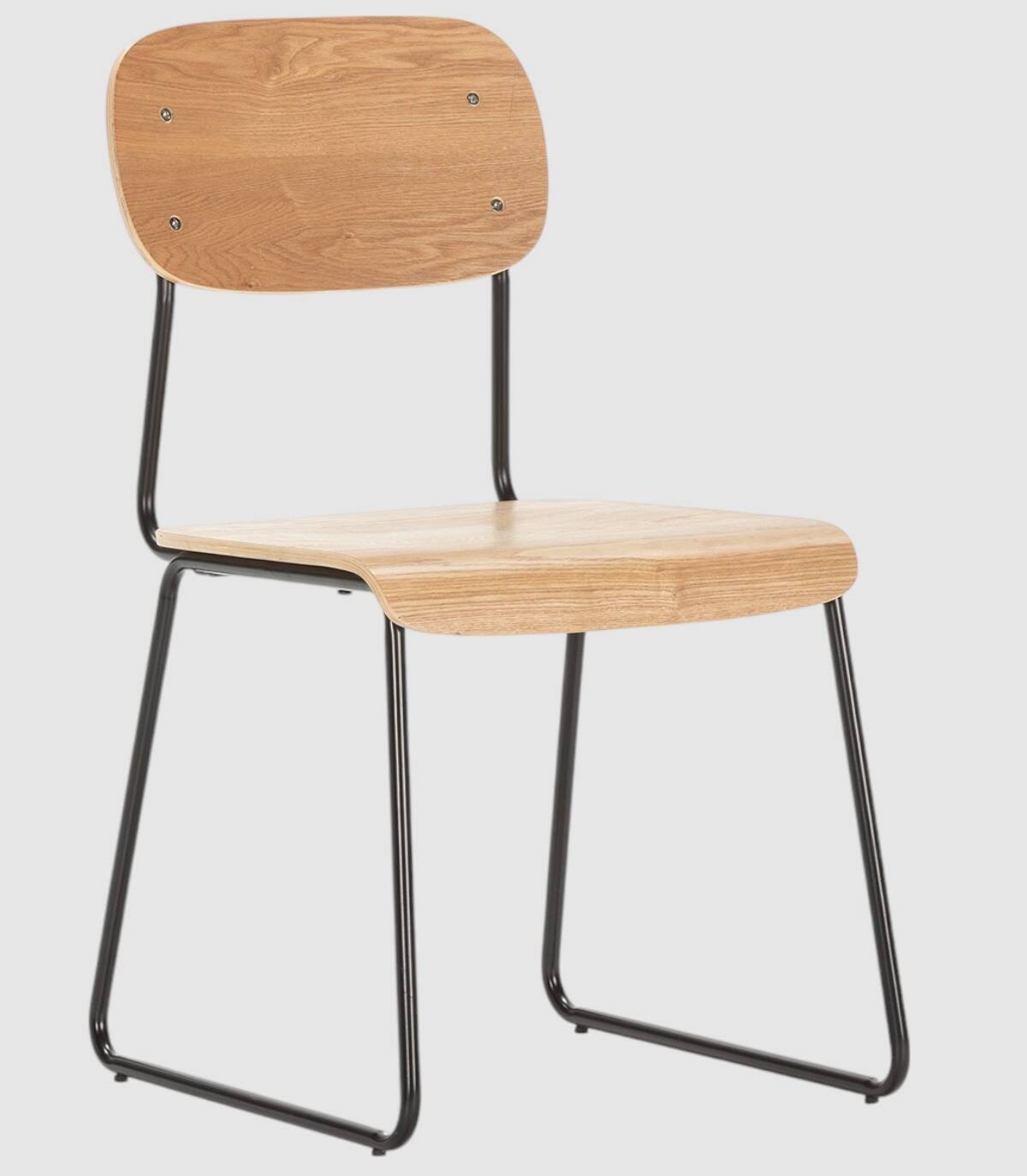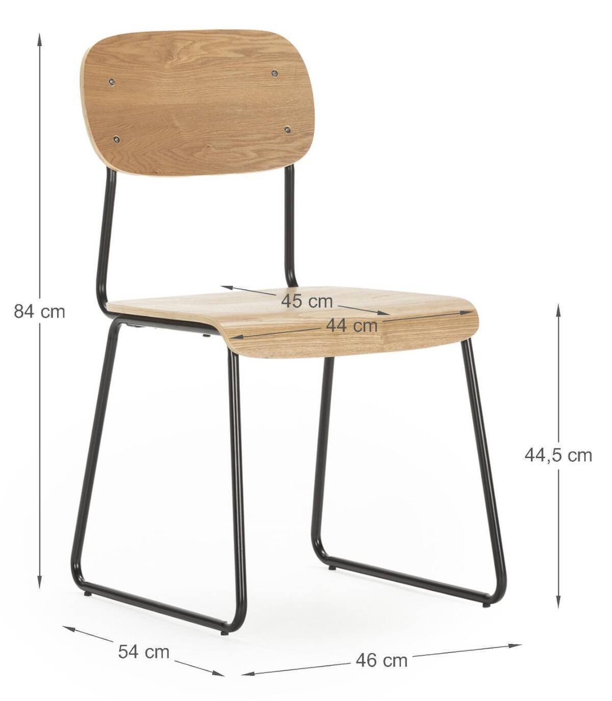 La silla Neka se compone de asiento y respaldo de madera de color natural sobre estructura de metal con cuatro patas pintado de color negro.