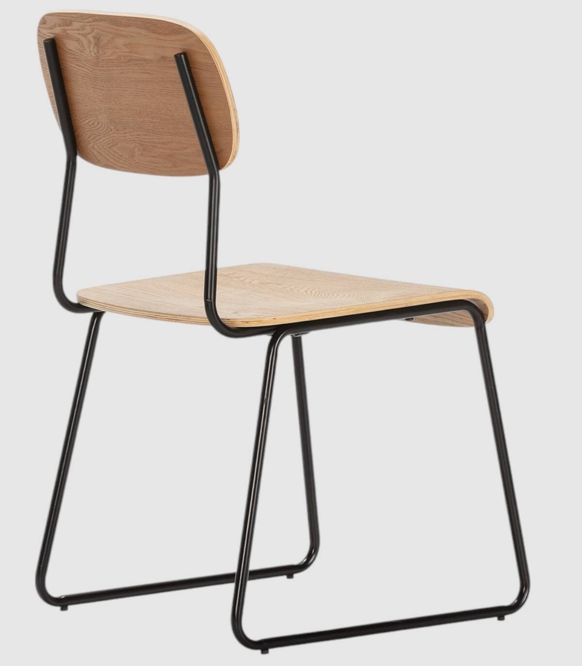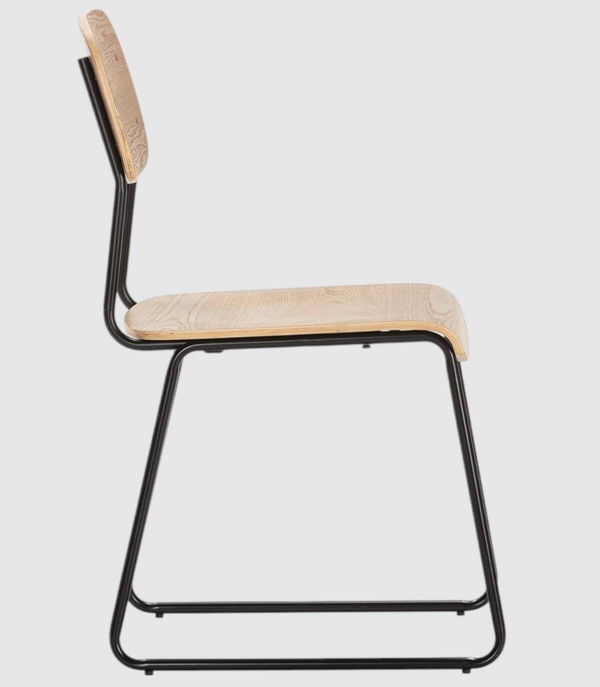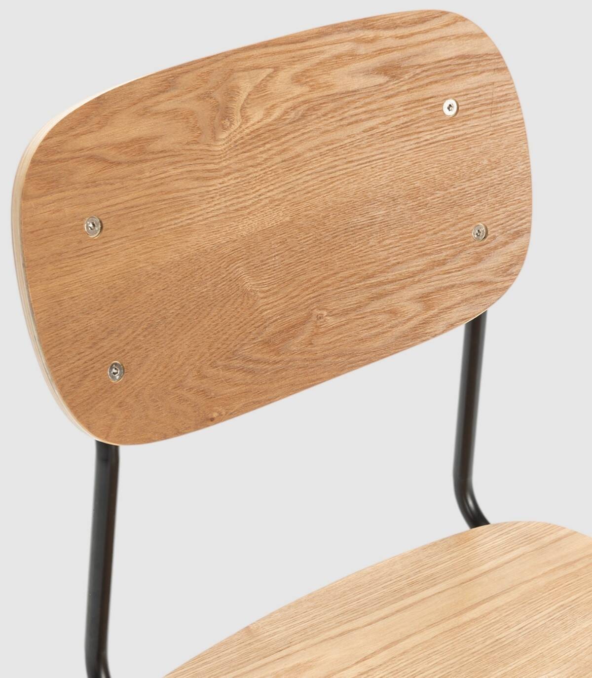 La silla Neka se compone de asiento y respaldo de madera de color natural sobre estructura de metal con cuatro patas pintado de color negro.