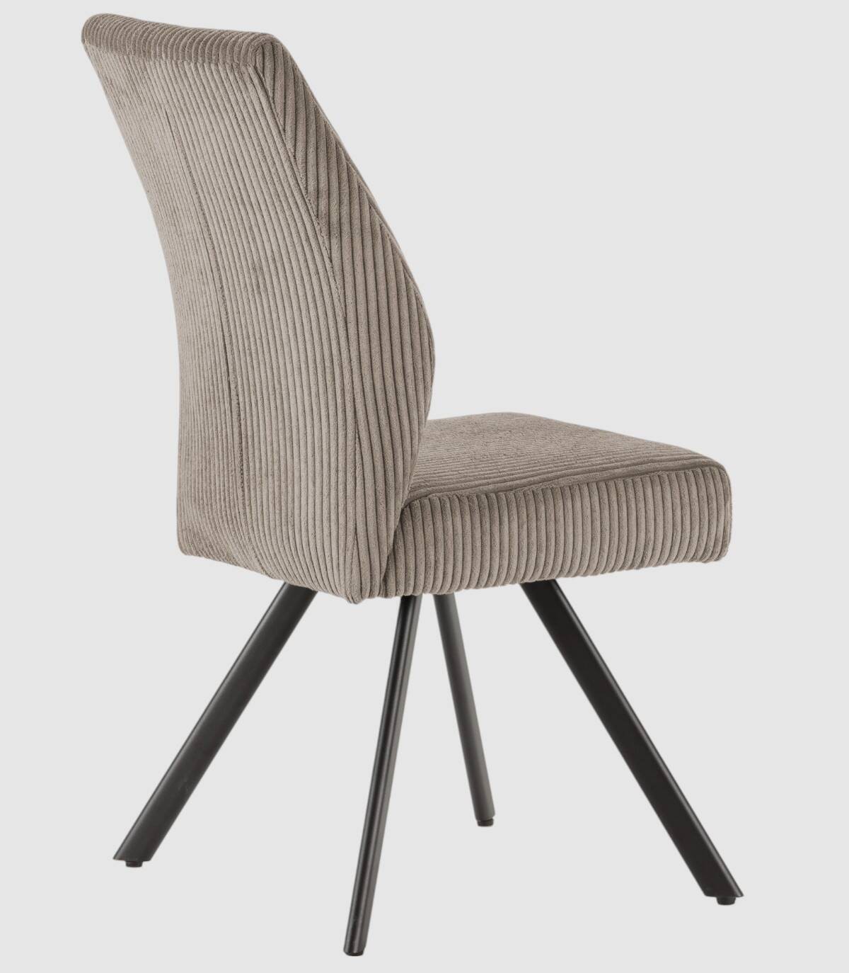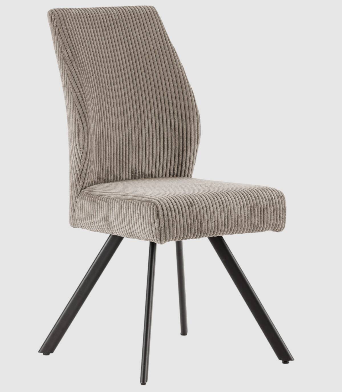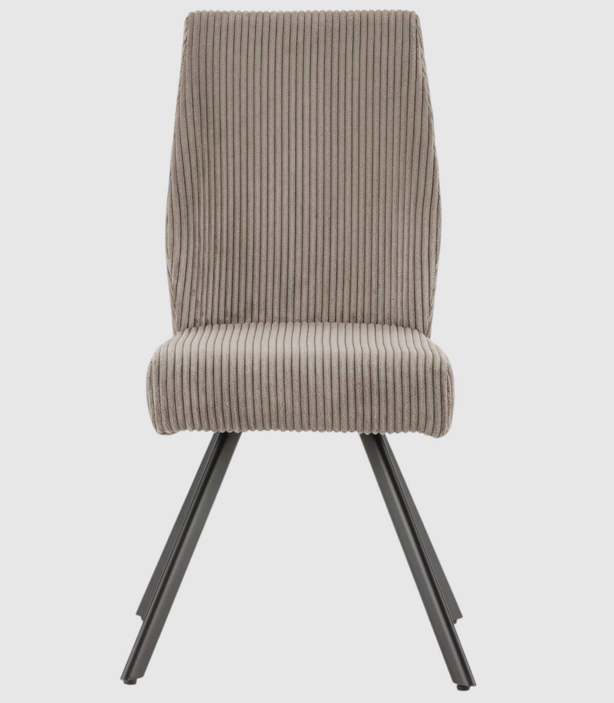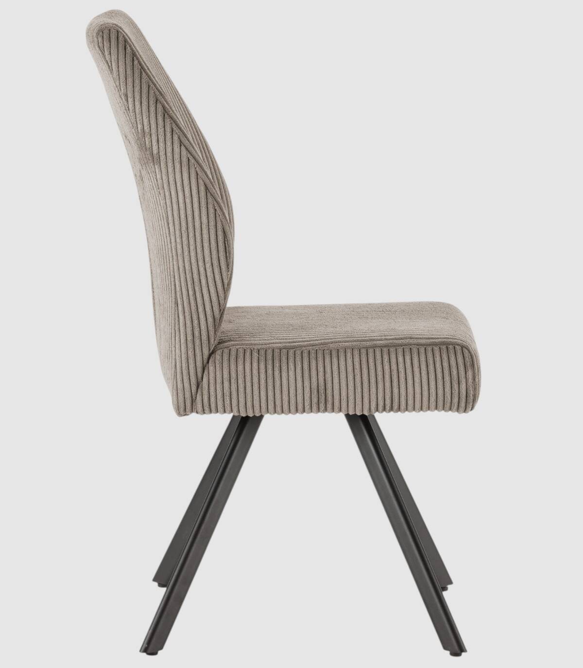 La silla Keri se compone de asiento y respaldo tapizado de color gris claro sobre estructura de metal con cuatro patas pintado de color negro.
