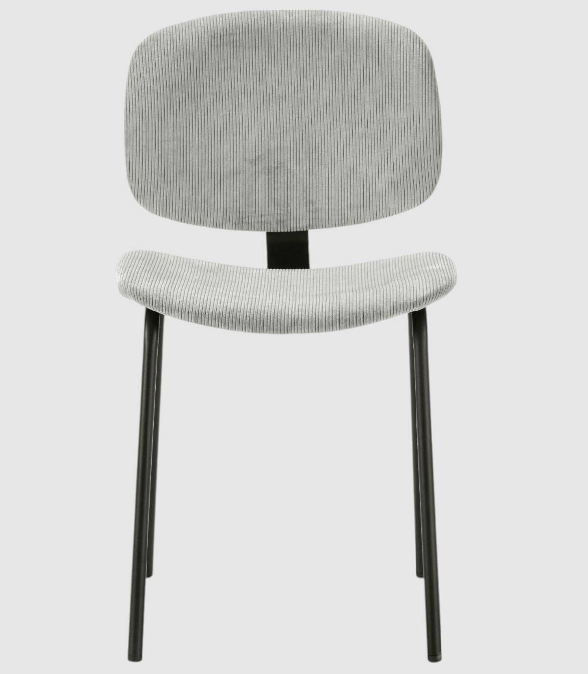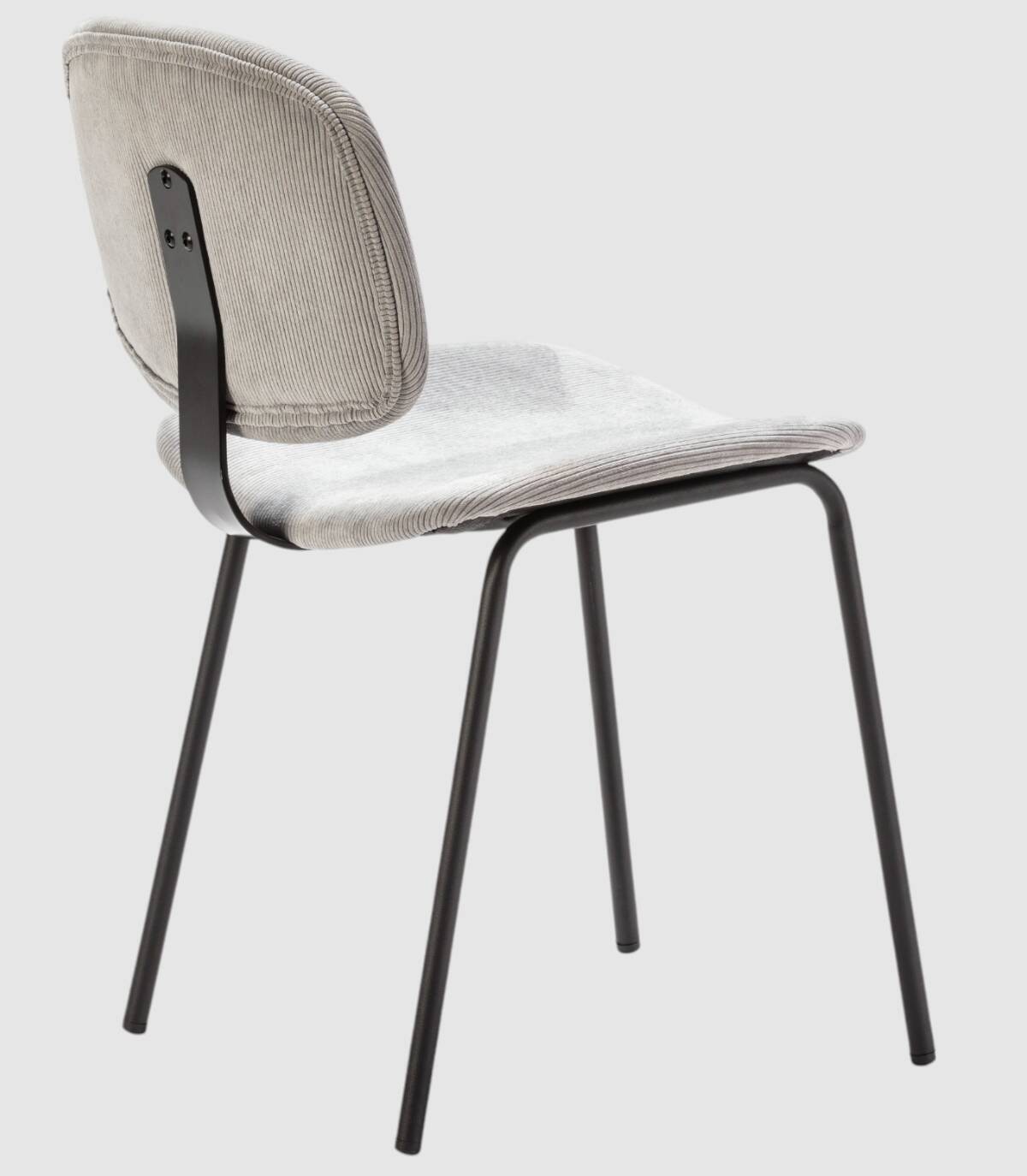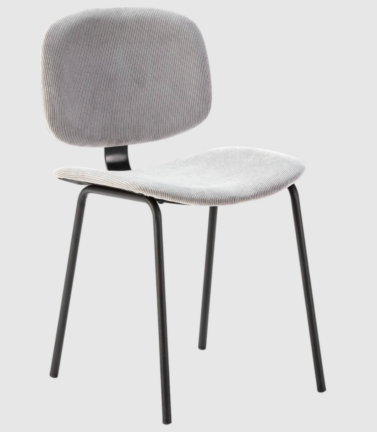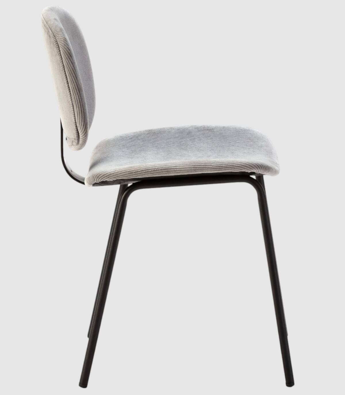 La silla Dimsu se compone de asiento y respaldo tapizado de color gris sobre estructura de metal con cuatro patas pintado de color negro.