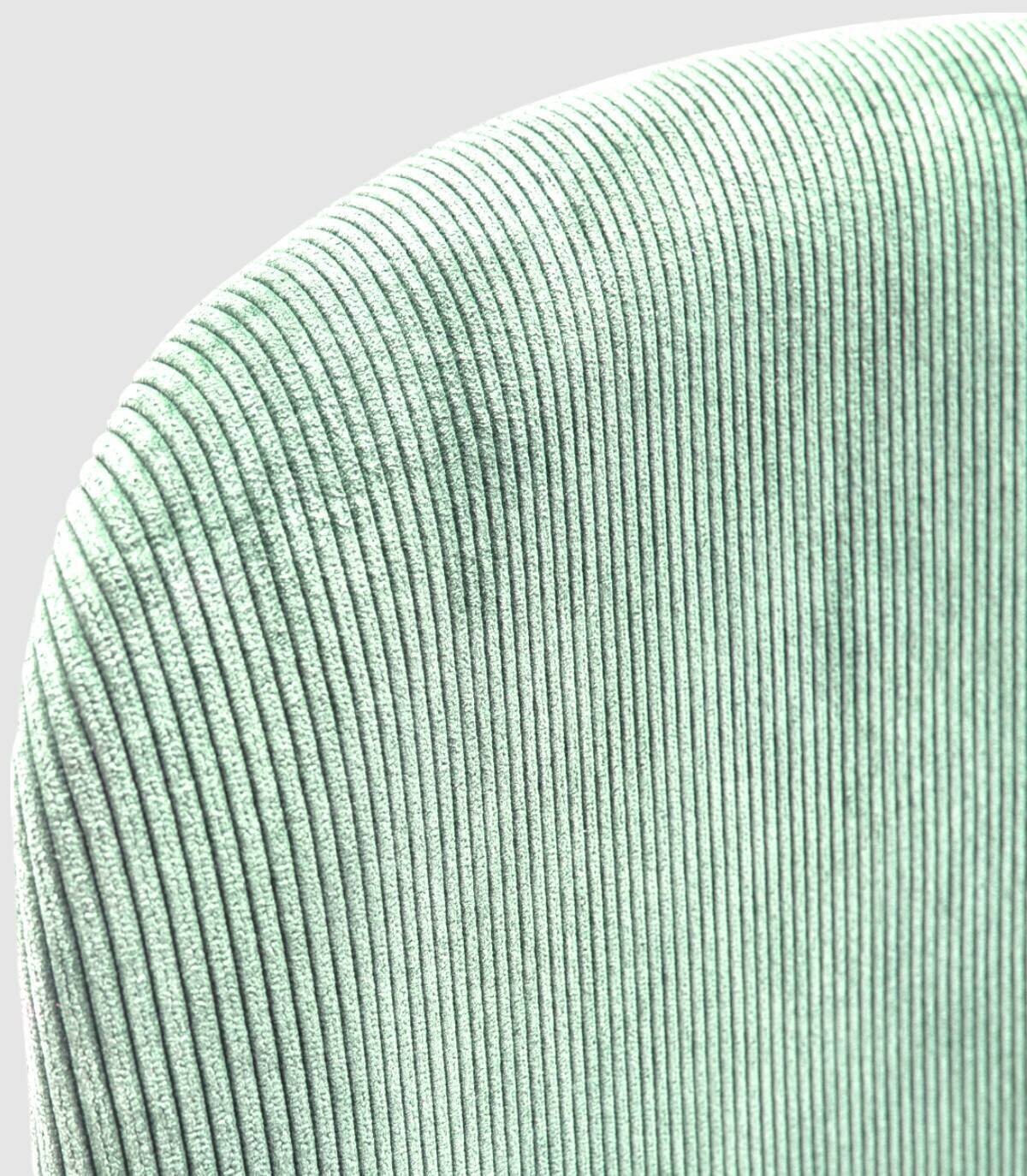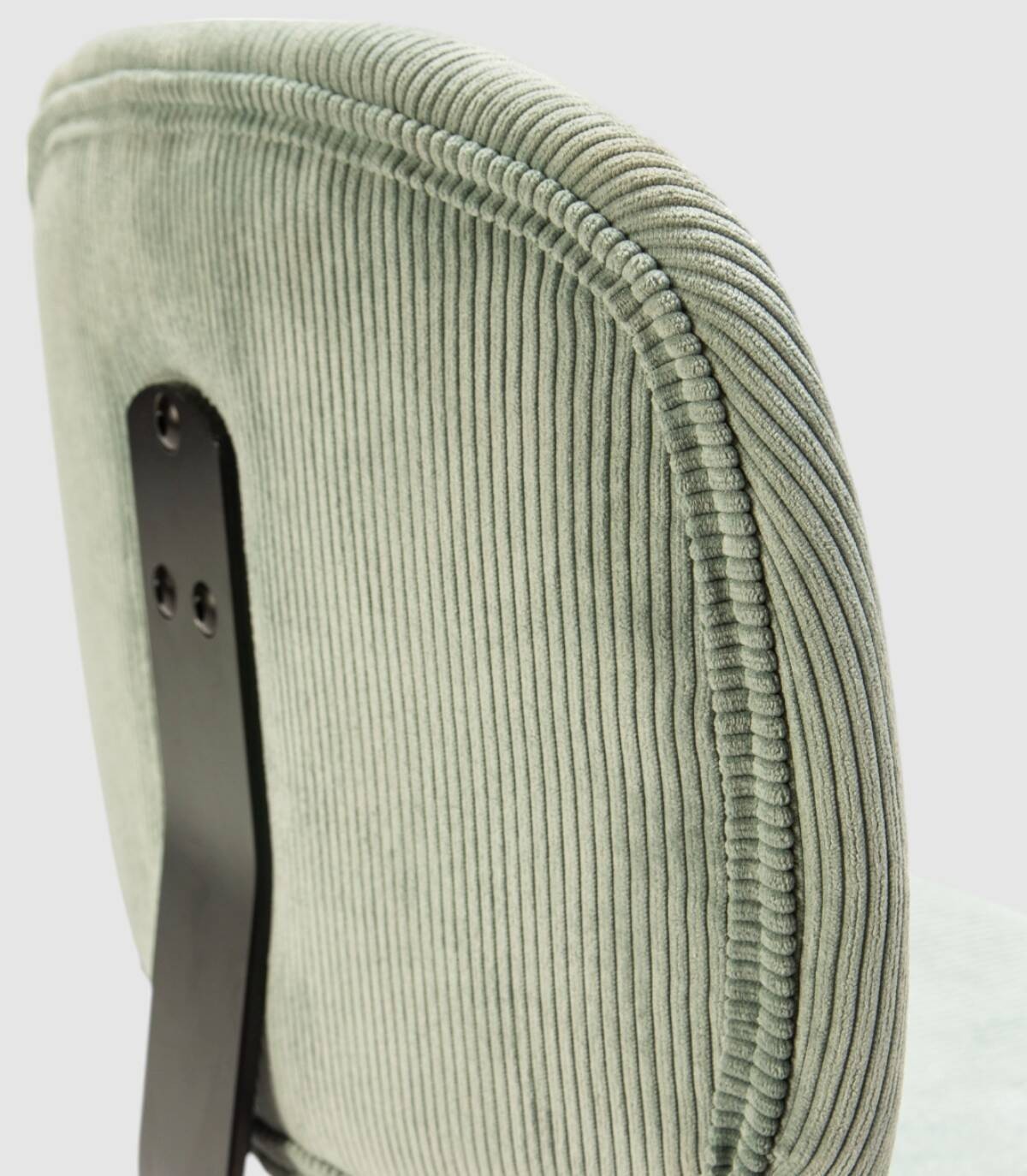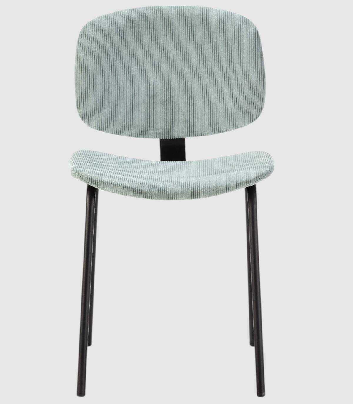 La silla Dimsu se compone de asiento y respaldo tapizado de color aguamarina sobre estructura de metal con cuatro patas pintado de color negro.