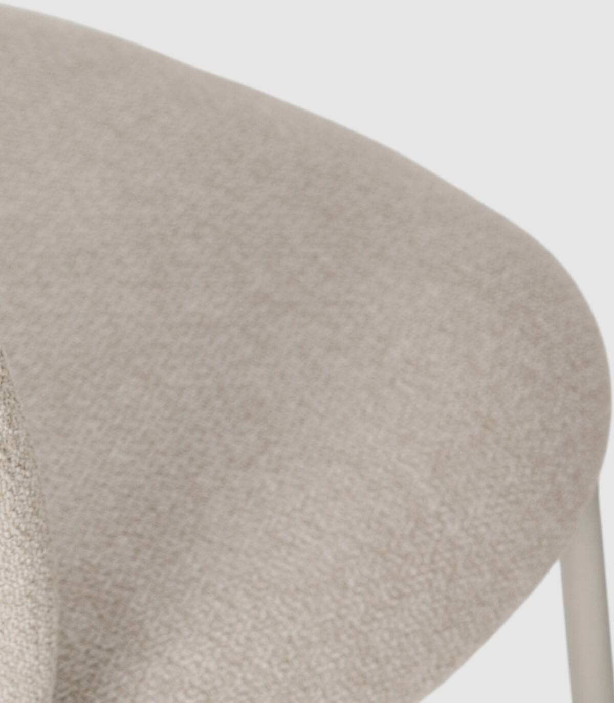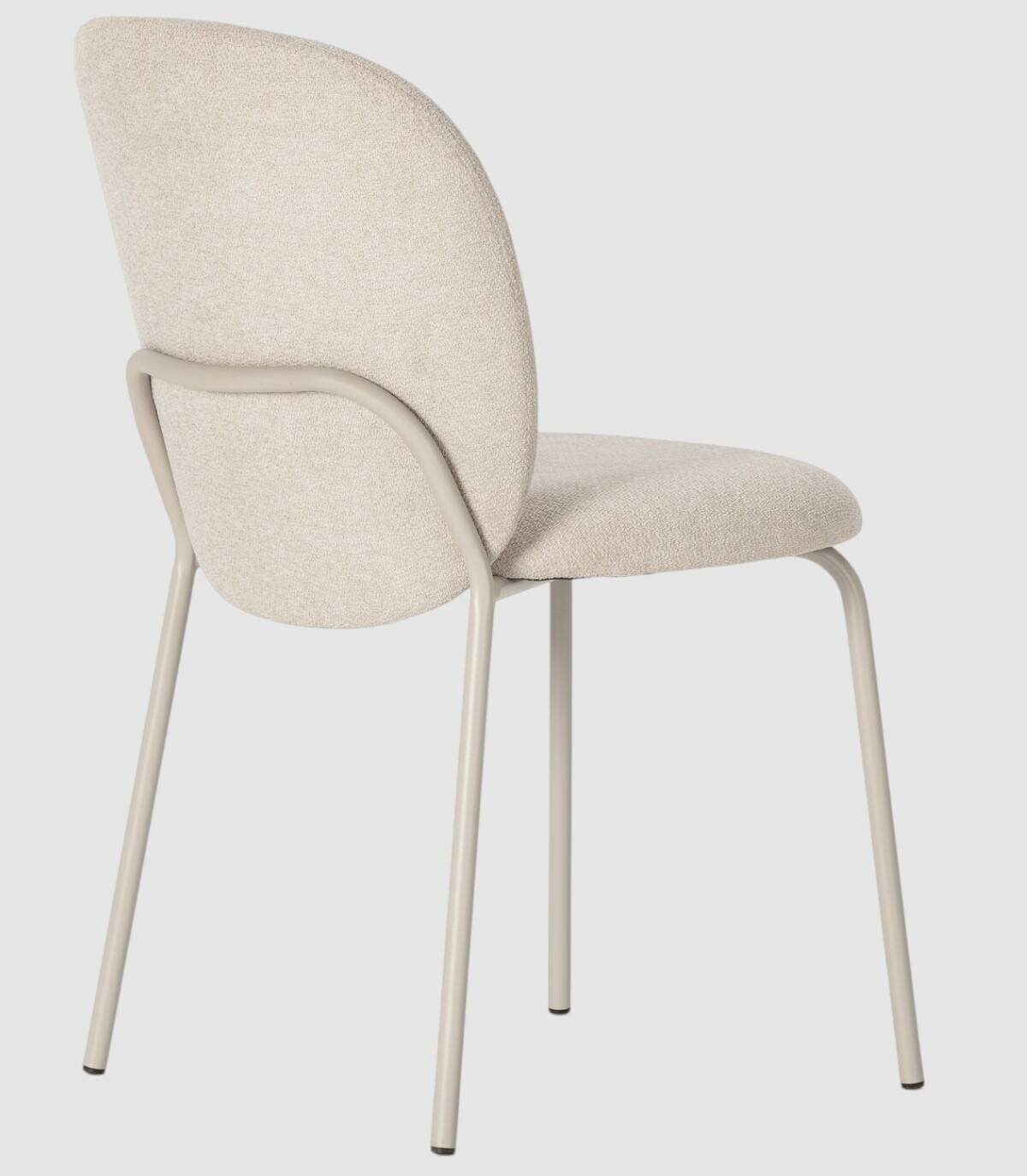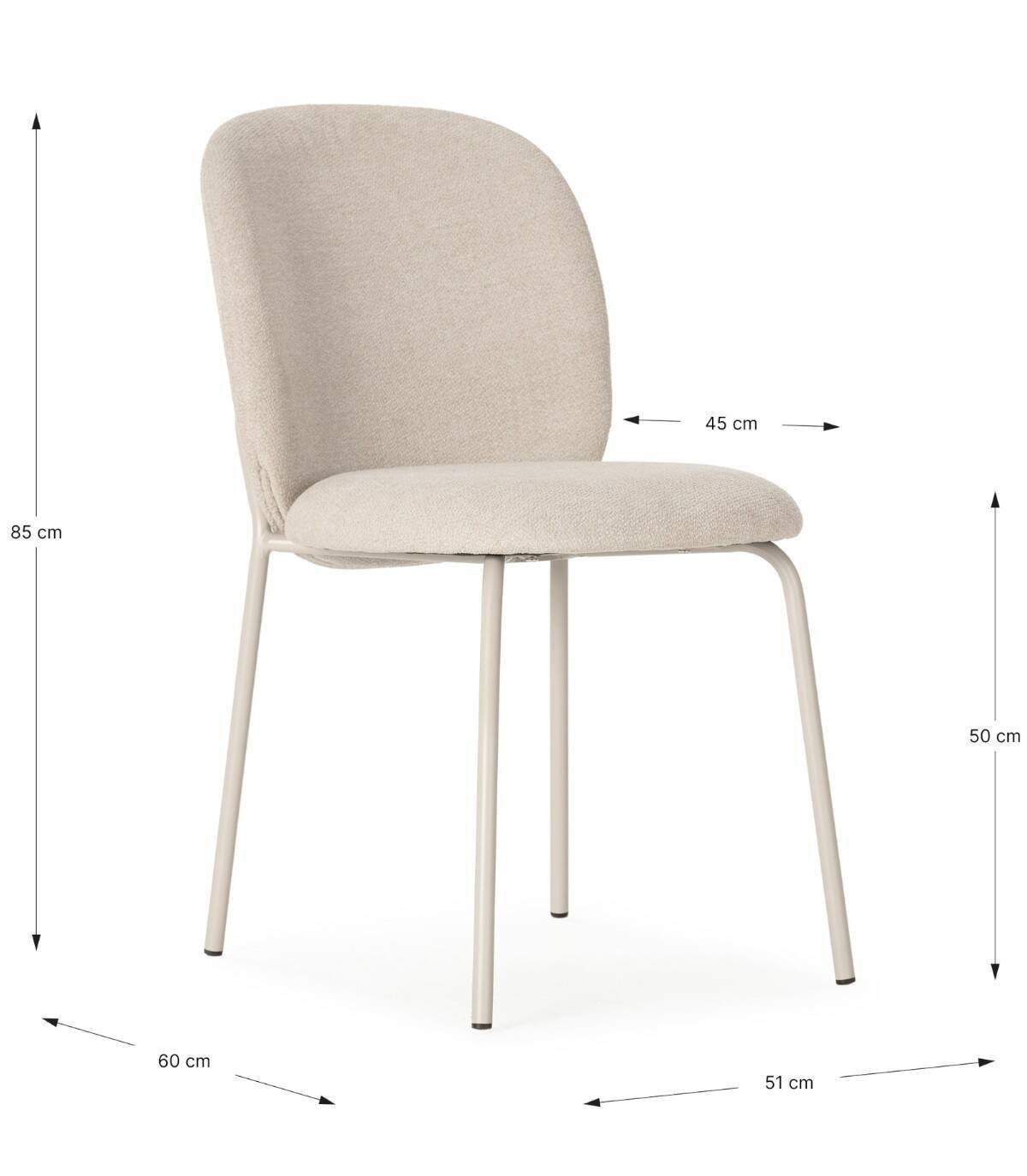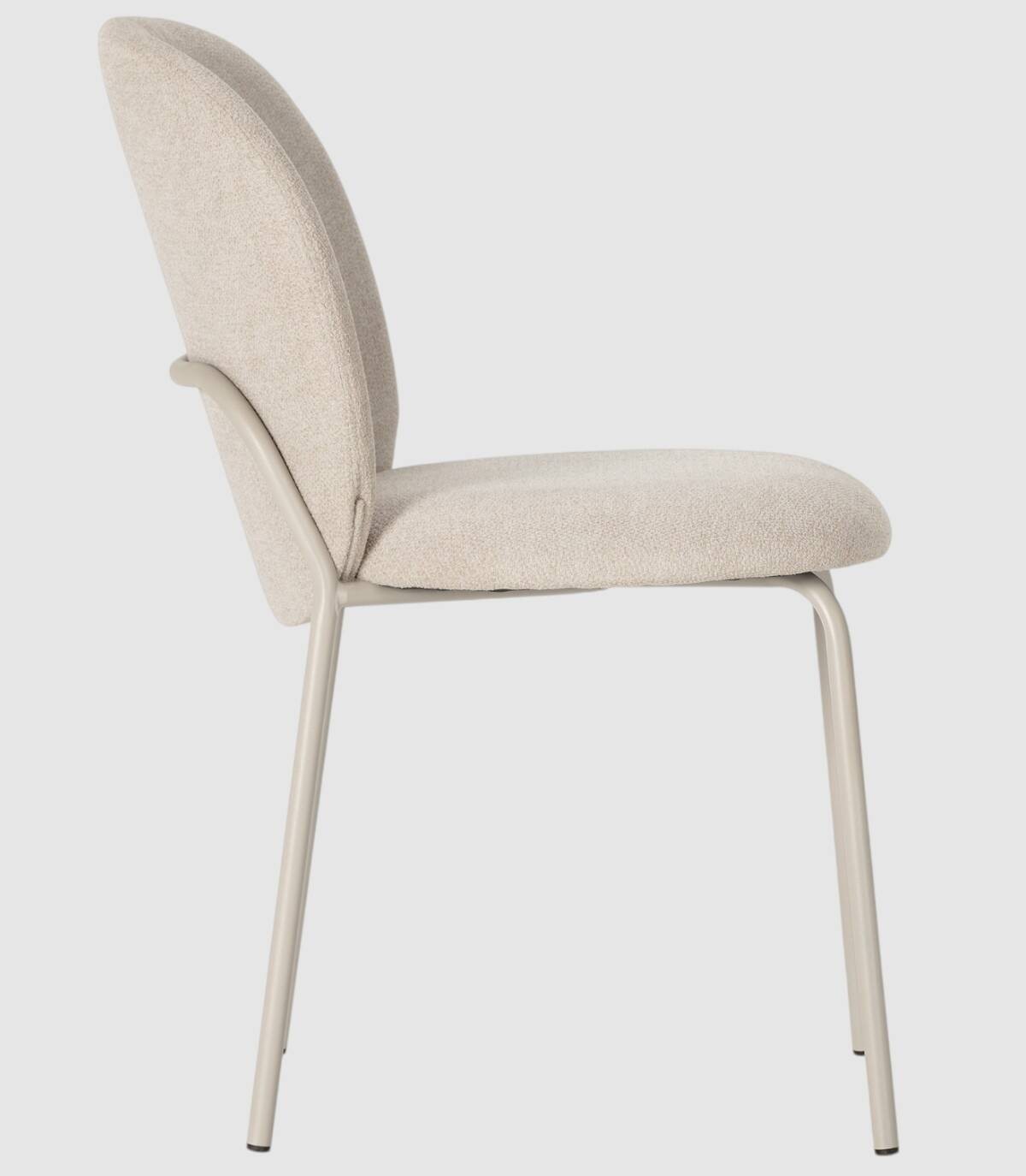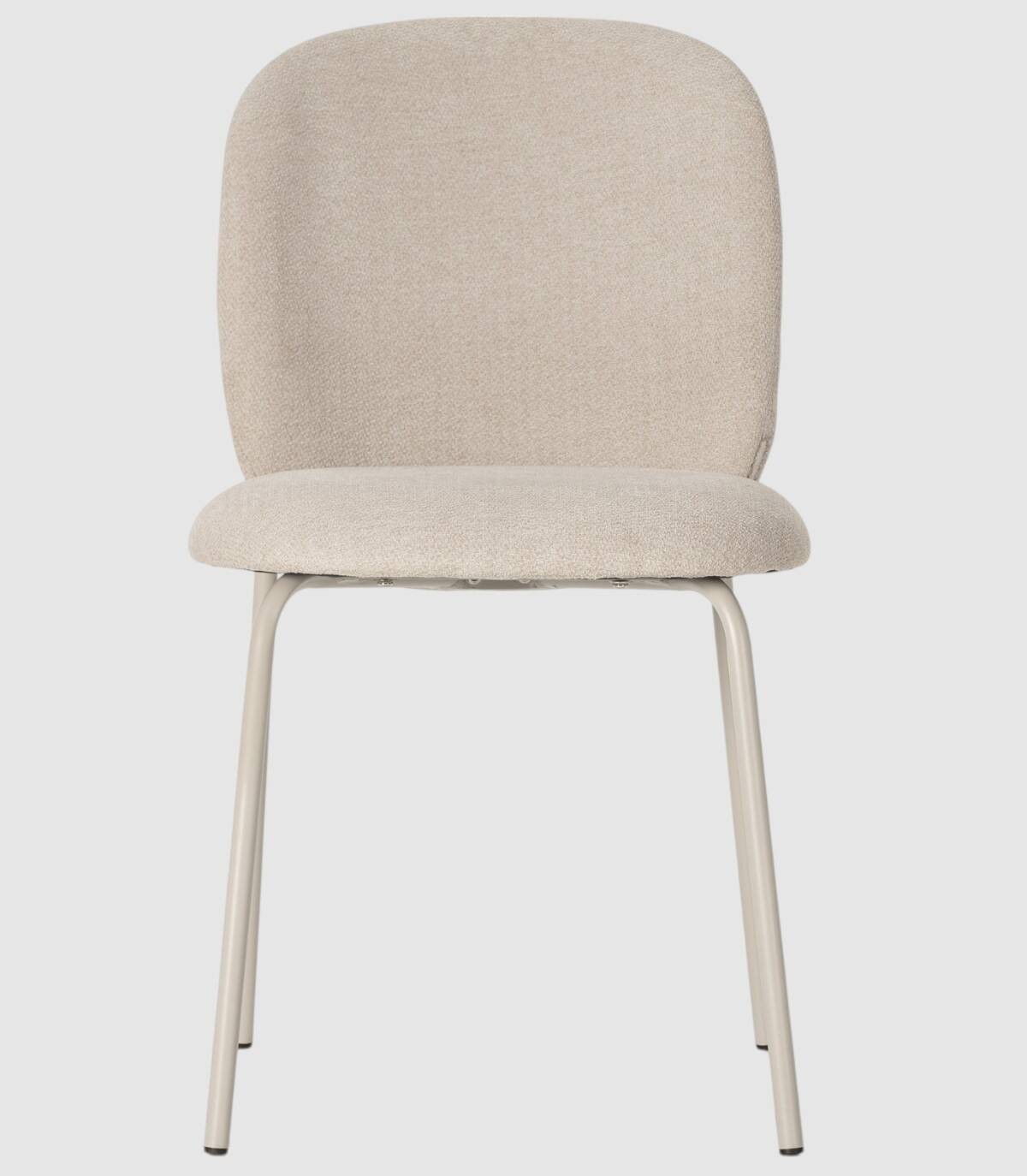 La silla Leama se compone de asiento y respaldo tapizado de color beige sobre estructura de metal con cuatro patas pintado de color crema.