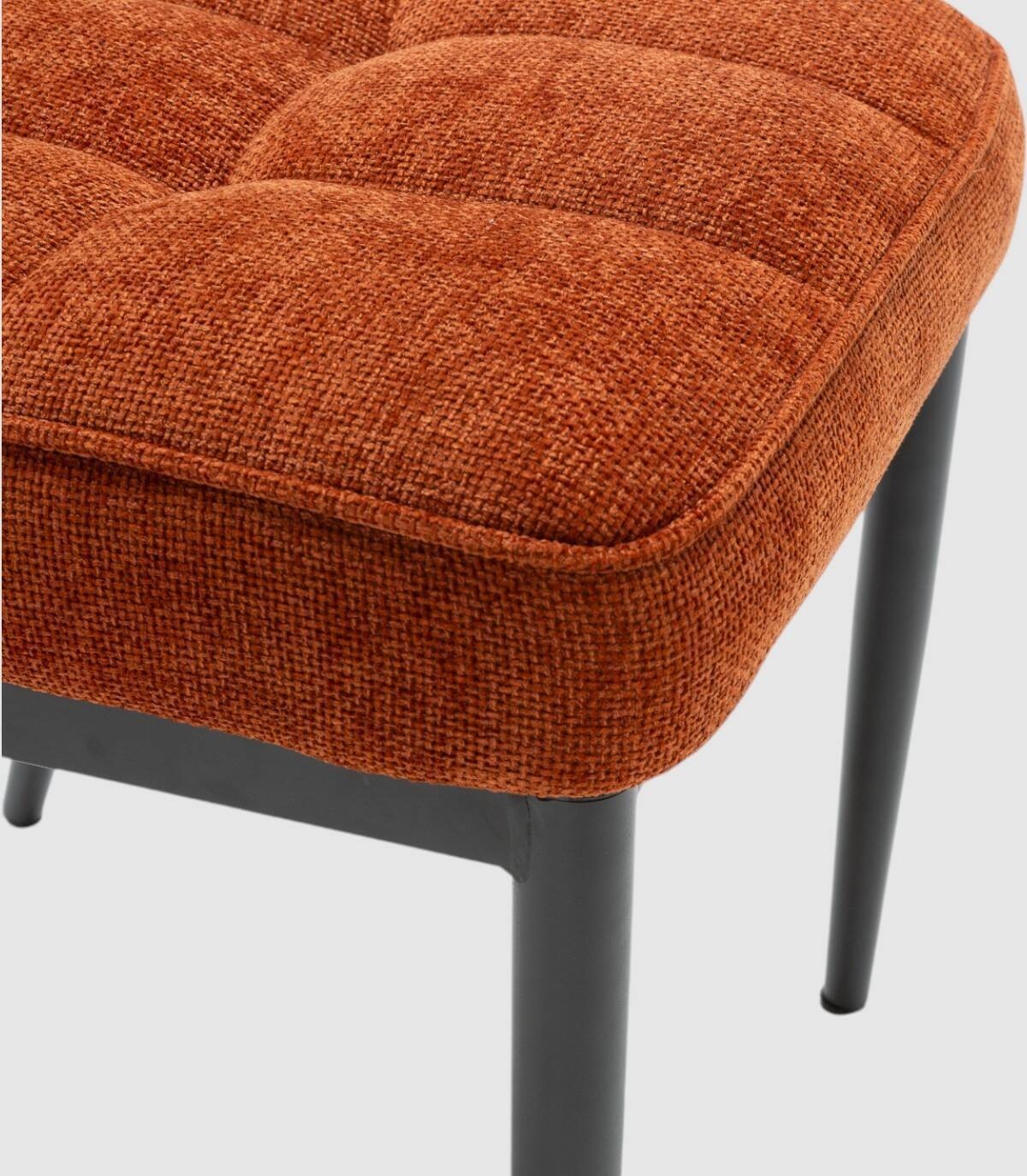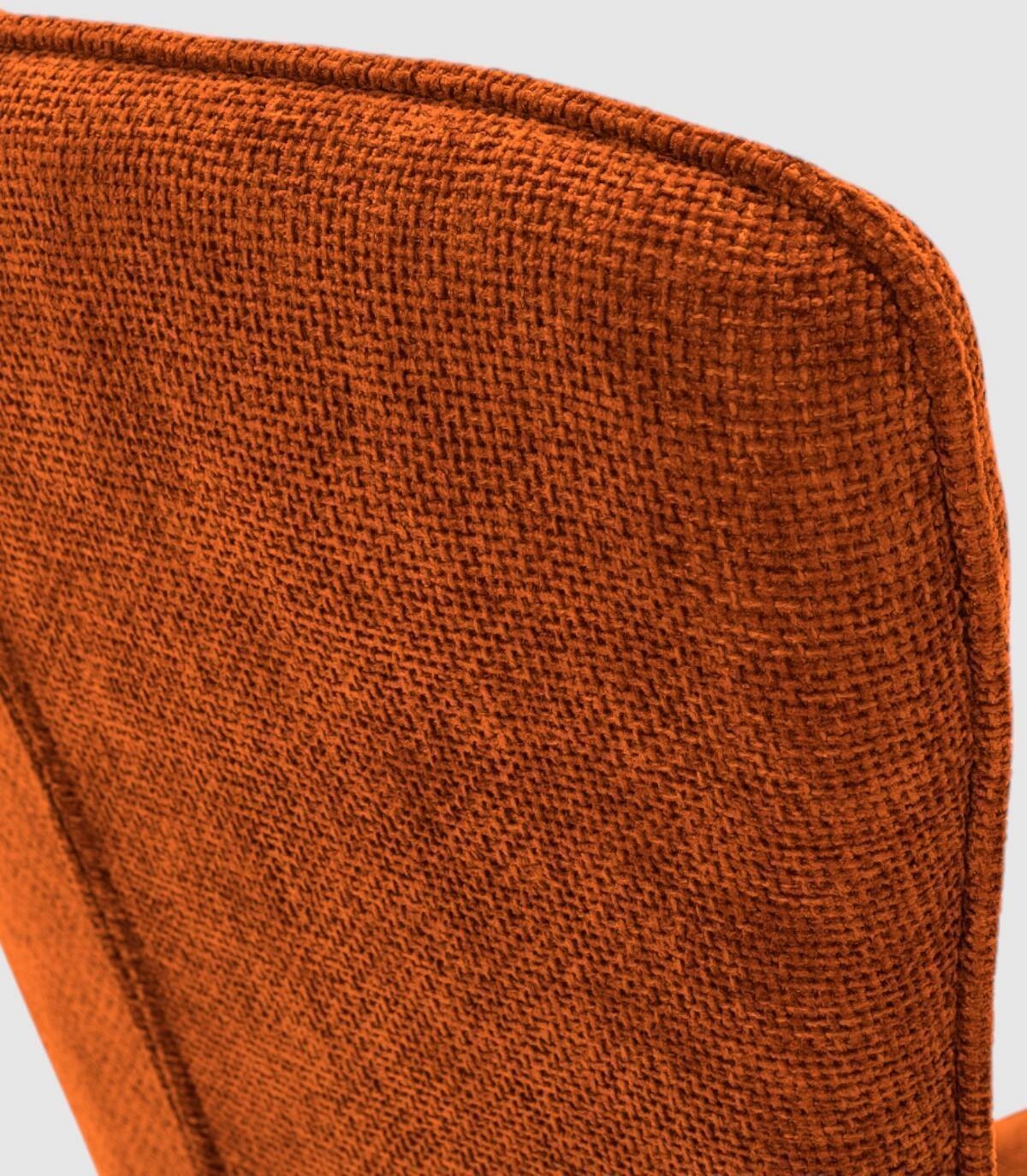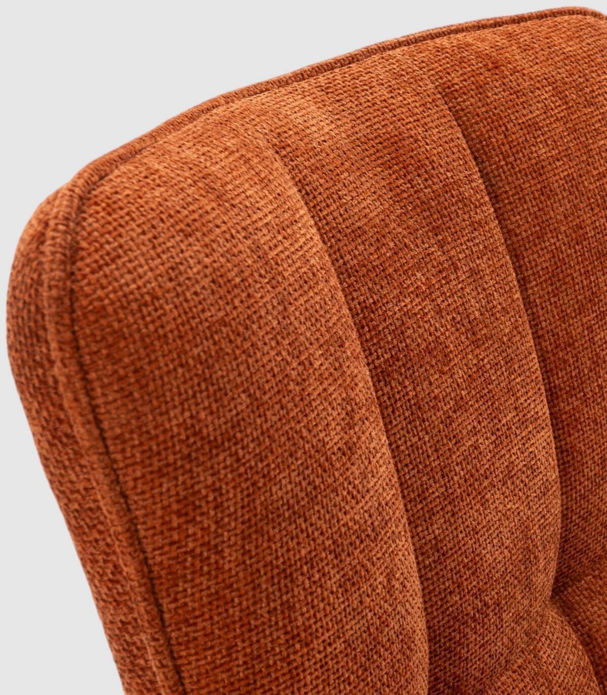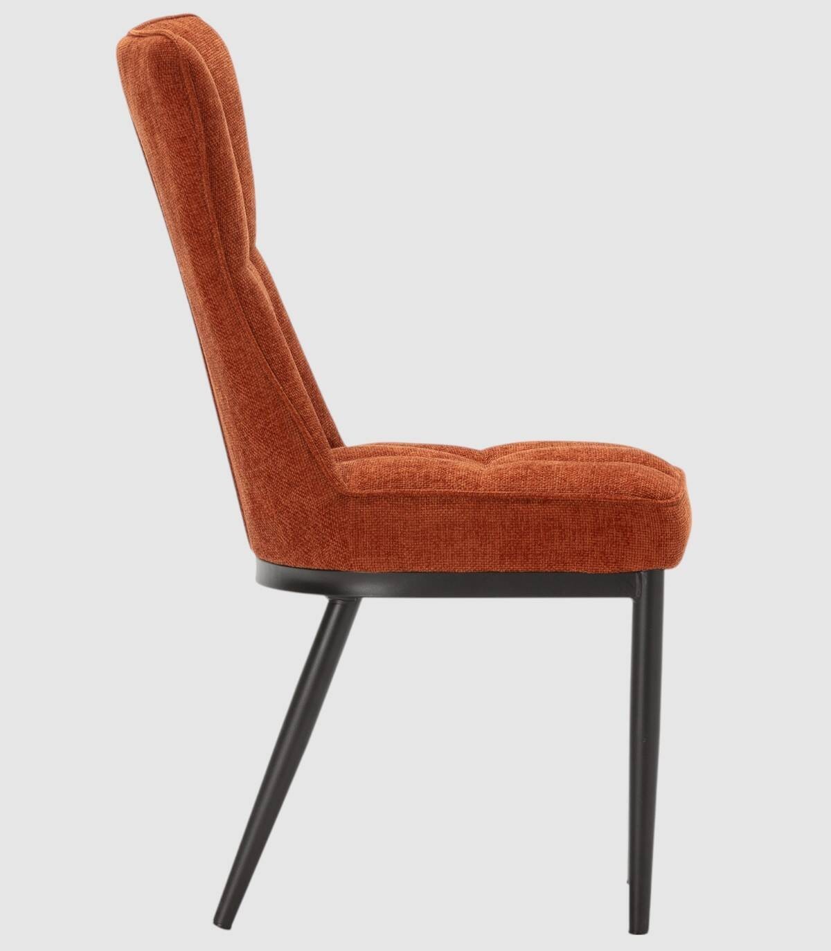 La silla Daka se compone de asiento y respaldo tapizados de color terracota sobre estructura y cuatro patas de metal pintado de color negro.