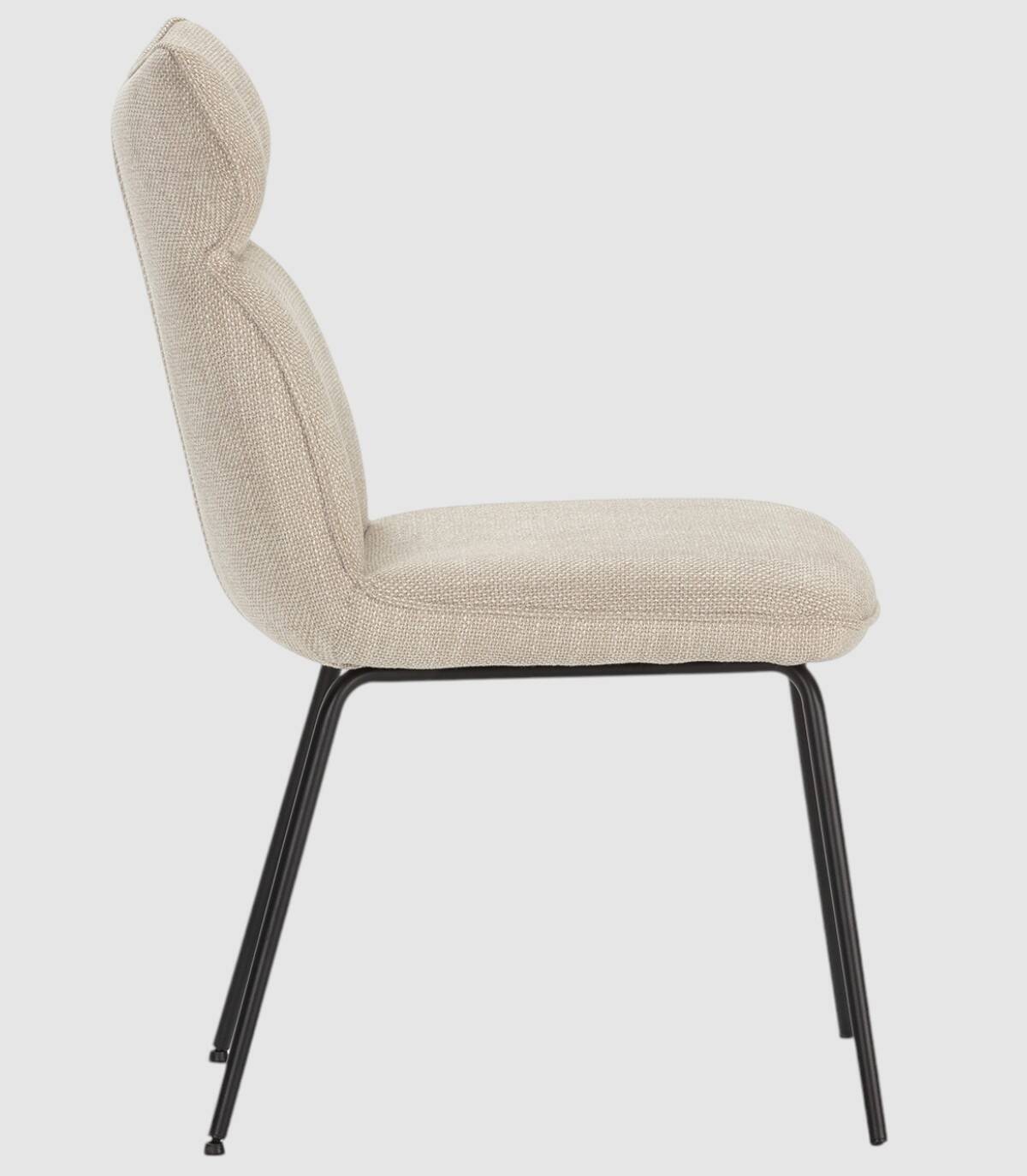La silla Taka se compone de asiento y respaldo tapizados de color beige sobre estructura y cuatro patas de metal pintado de color negro.